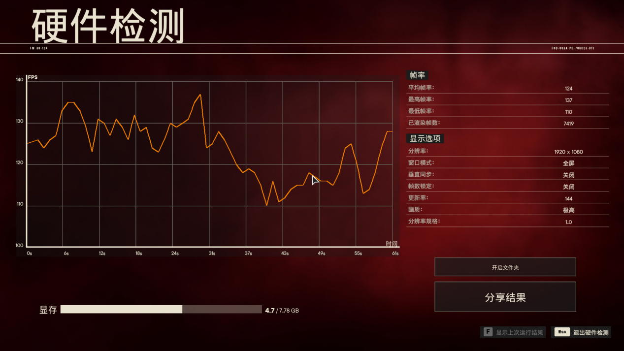 1080P分辨率预设最高画质平均帧数100帧左右