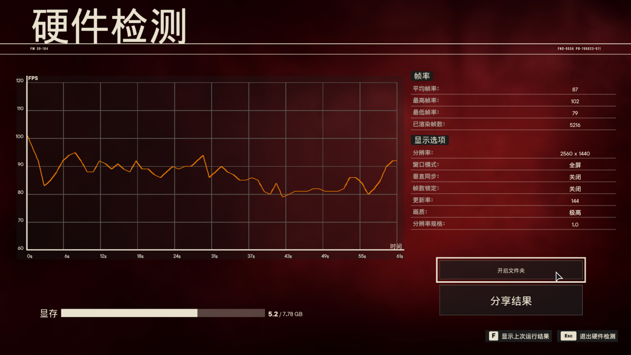 2K分辨率预设最高画质平均帧数80帧左右