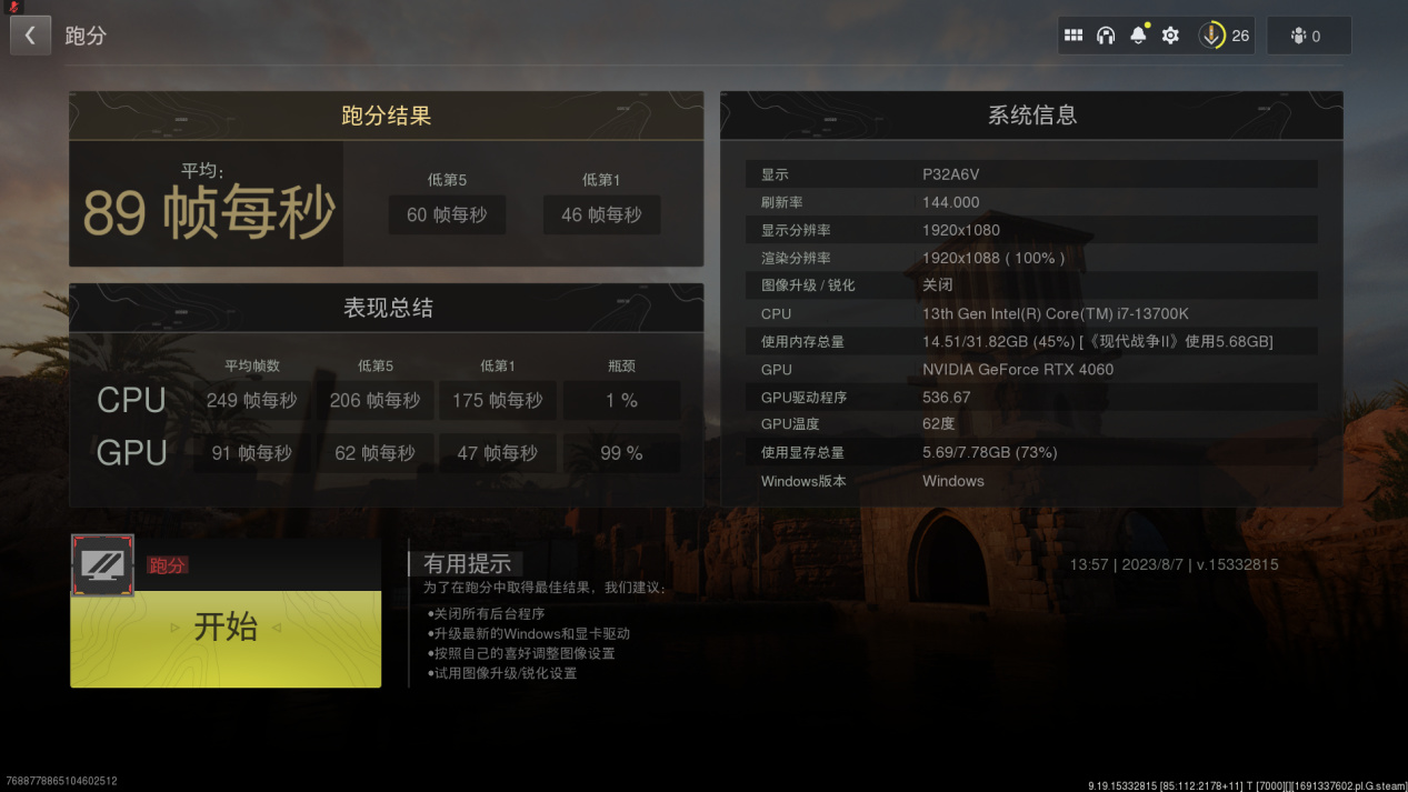 1080P预设最高画质平均88帧,2K预设最高画质平均61帧