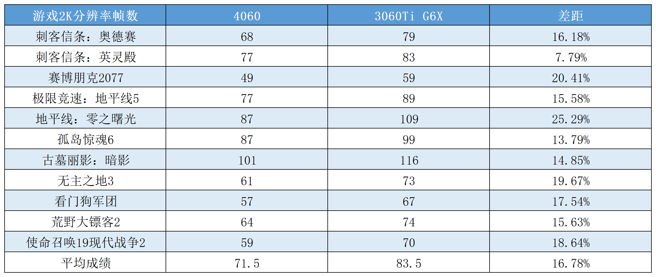2K分辨率3060Ti G6X平均领先4060 16.78%
