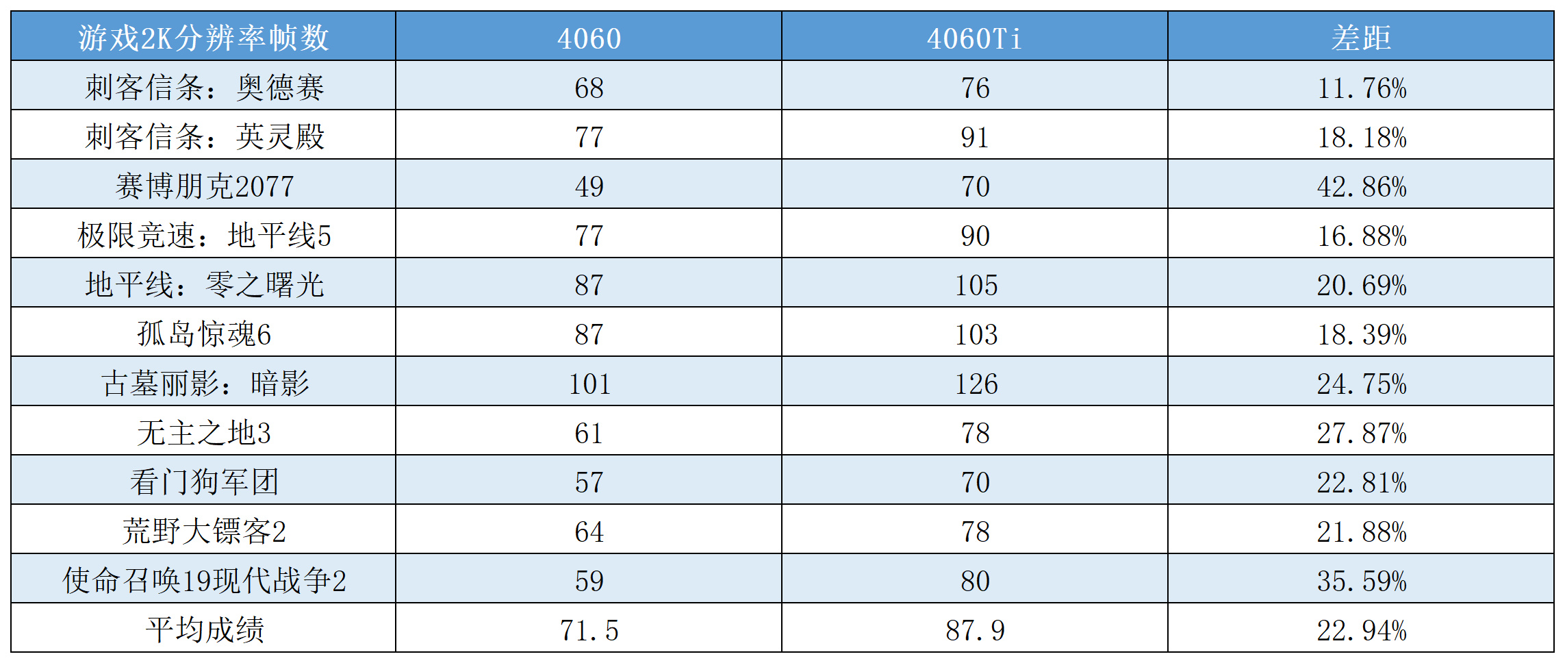 2K分辨率4060Ti平均领先4060 22.94%