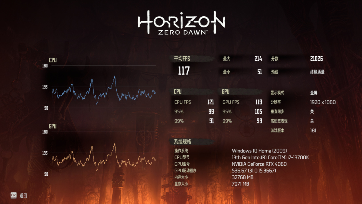 1080P预设最高画质平均117帧,2K预设最高画质平均87帧