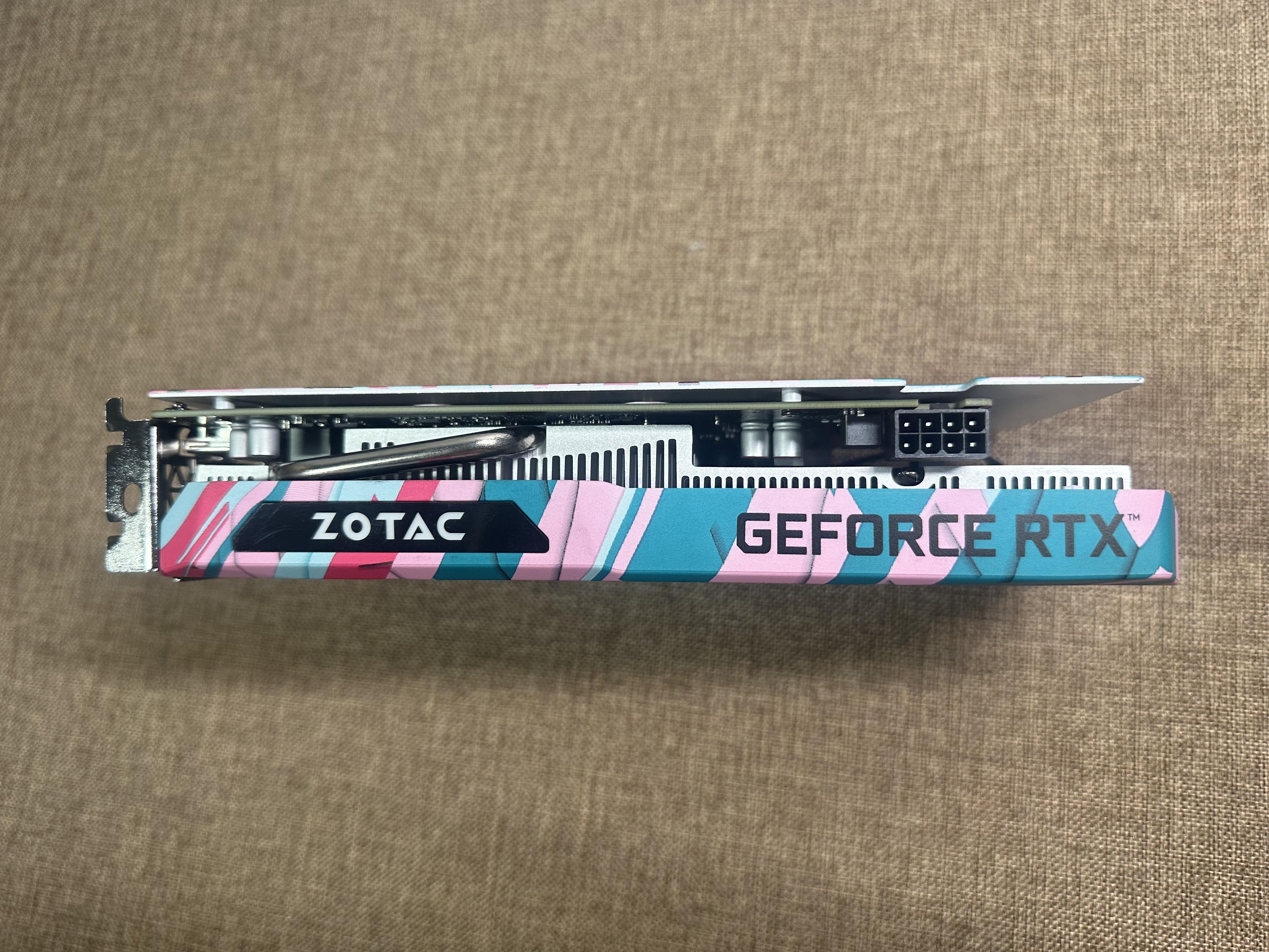 侧面有索泰的LOGO灯,单8Pin供电,视频输出接口还是传统的3×DP+1×HDMI
