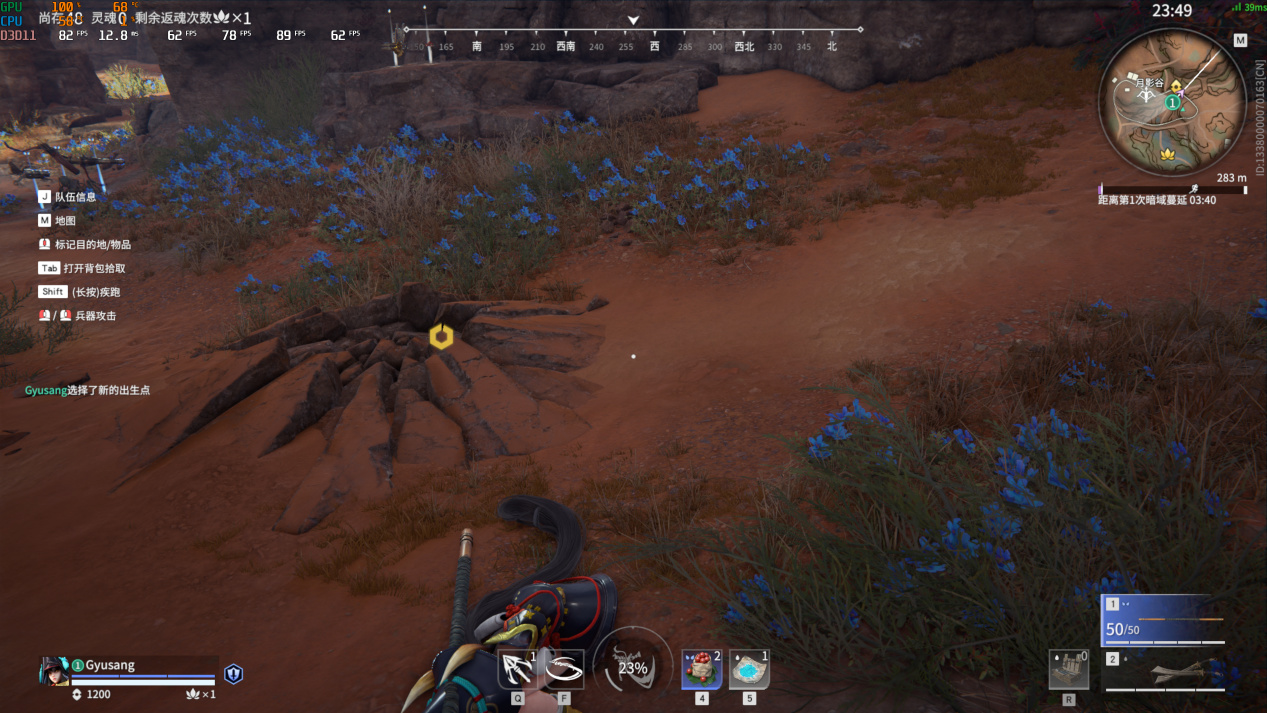 切到4K分辨率就没法玩了,4K最高画质只有40~50帧,不过永劫这游戏支持DLSS,开启DLSS性能模式后帧数有提到了100帧左右。