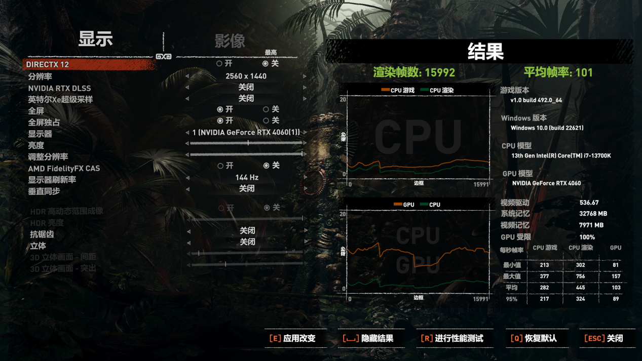 1080P预设最高画质平均124帧,2K预设最高画质平均87帧