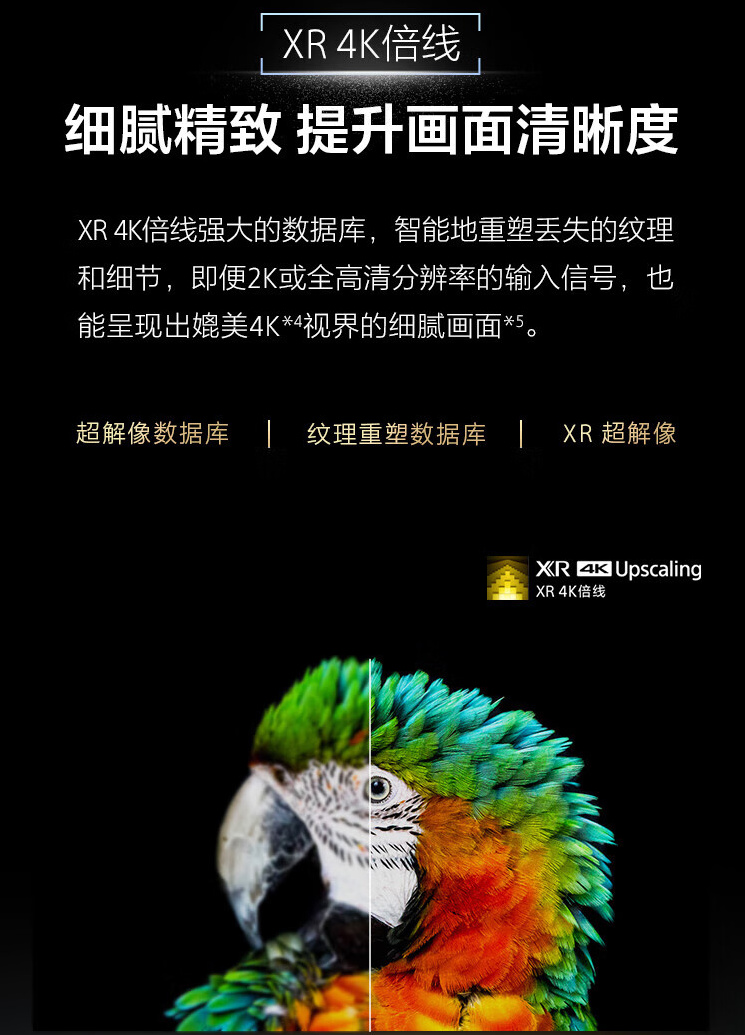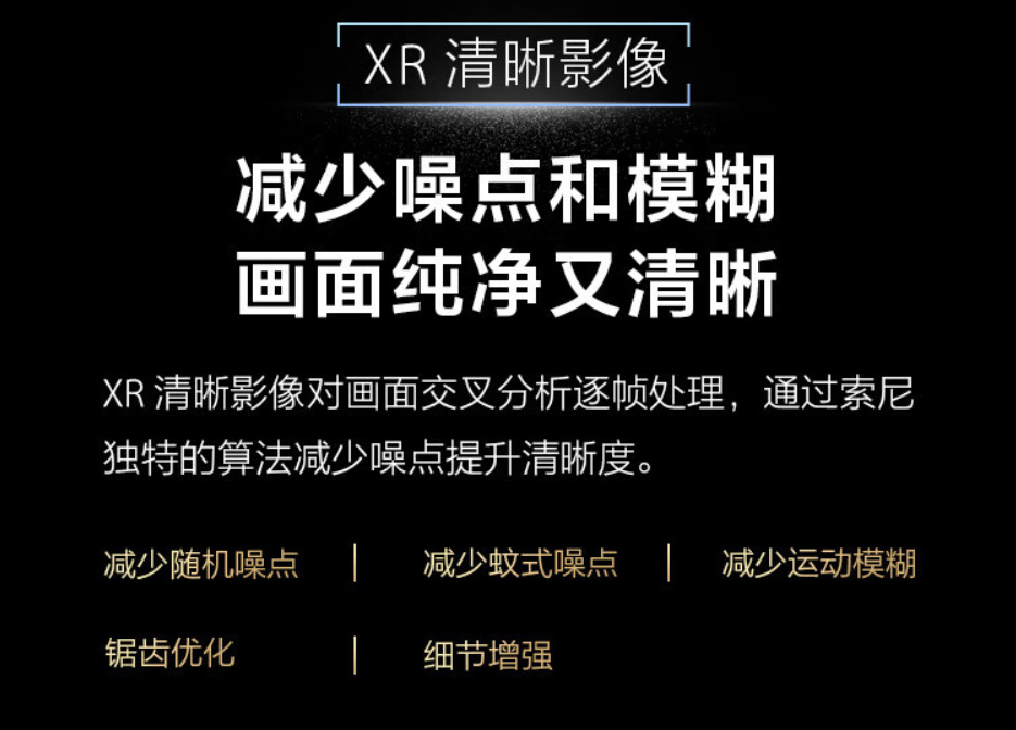 ▲先來說一下XR清晰影像功能,簡單來說,XR認知芯片會對顯示畫面進行逐幀處理,索尼的獨家算法會對畫面進行降噪與降鋸齒,同時增強細節並減少運動模糊,能夠大幅提升畫面效果。