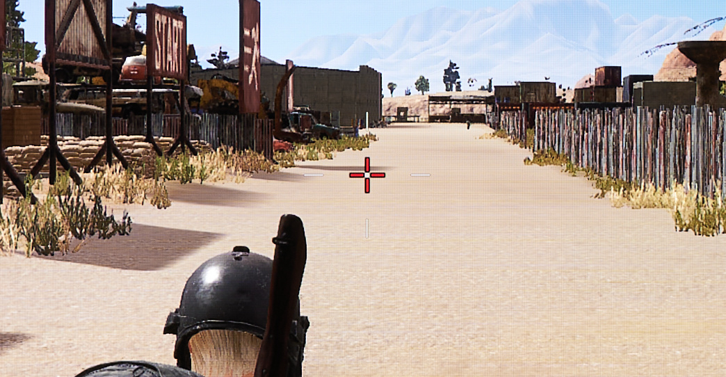 ▲另一個重要功能則是十字線瞄準輔助,像《PUBG》這類FPS遊戲中,雖然已經爲槍械配備了最基礎的準星,但真的只能說聊勝於無來形容,比如上面這個圖,你能找到畫面上的準星嗎?