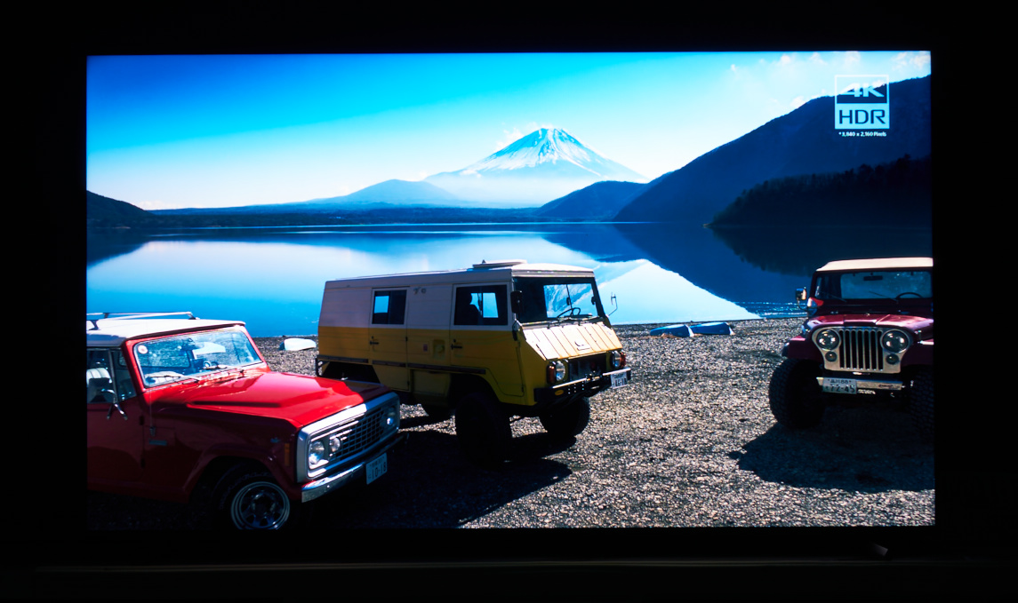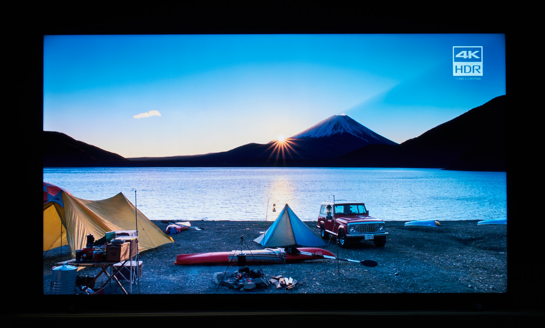▲我們再通過另一個索尼的4K HDR演示片《露營》來看一看,畫面的明暗對比還原十分完好,遠方亮處的富士山與湖泊的倒影明亮但不過爆,而背光暗處的汽車牌照依舊清晰可見,這便是XR認知芯片帶來的強烈明暗對比與暗部細節還原,畫面簡直美爆了。