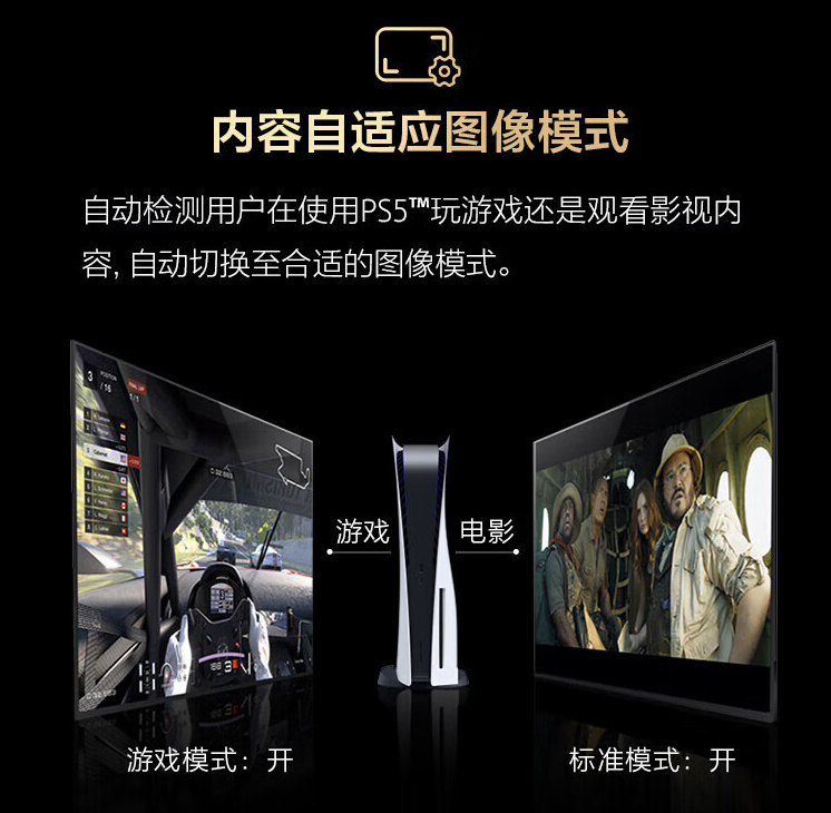 我在文章的開頭已經說了,索尼 XR-65X90L是一款專業級的遊戲電視,尤其是與PS5進行搭配時更是優秀,這裏我們就來仔細說一說,作爲PS5的同門師兄弟,索尼爲XR-65X90L搭載了“Perfect for PS5”專屬功能——HDR自動映射與內容自適應圖像模式。