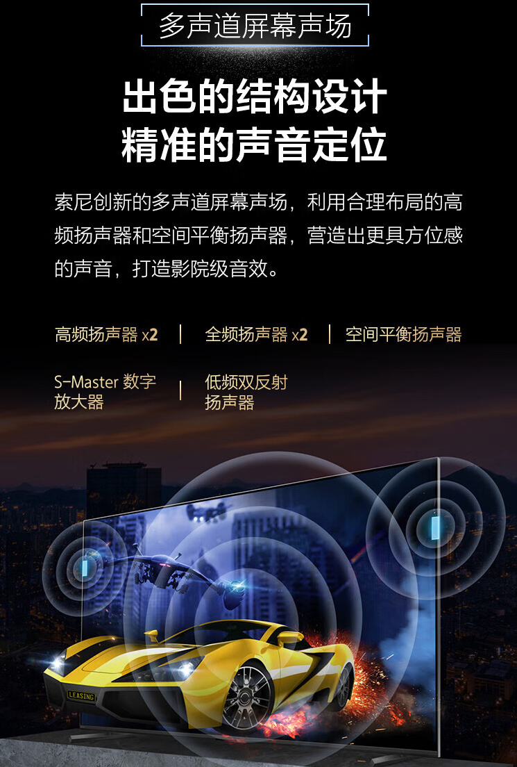 ▲聲音方面,索尼XR-65X90L將高頻揚聲器、全頻揚聲器、低頻雙反射揚聲器、空間平衡揚聲器等合理的佈局在電視上,能夠精確輸出與畫面效果匹配的源位置,給人以身臨其境之感。