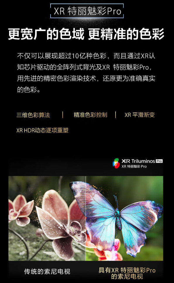 ▲除了出色的背光控制,SONY XR-65X90L在色彩控制方面同樣很優秀,XR 特麗魅彩Pro即使在HDR視頻中,也可通過XR HDR動態逐幀重塑功能精確還原畫面的原生色彩,並且保證畫面色彩自然過渡。