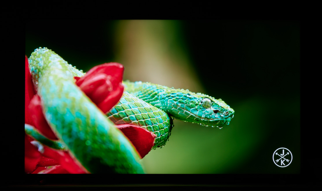 ▲再來看一看同樣來自JK的HDR作品《爬行動物》,畫面中這條蛇的綠色還原十分好(一般電視如果有色彩不準的,往往藍色和綠色最爲嚴重),且亮處不過曝,蛇鱗紋理十分清晰。