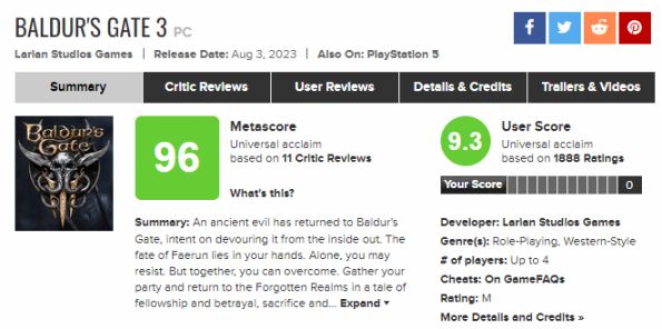 93%的好評率和M站均分96的成績,也都證明了遊戲深受媒體和玩家的喜愛。