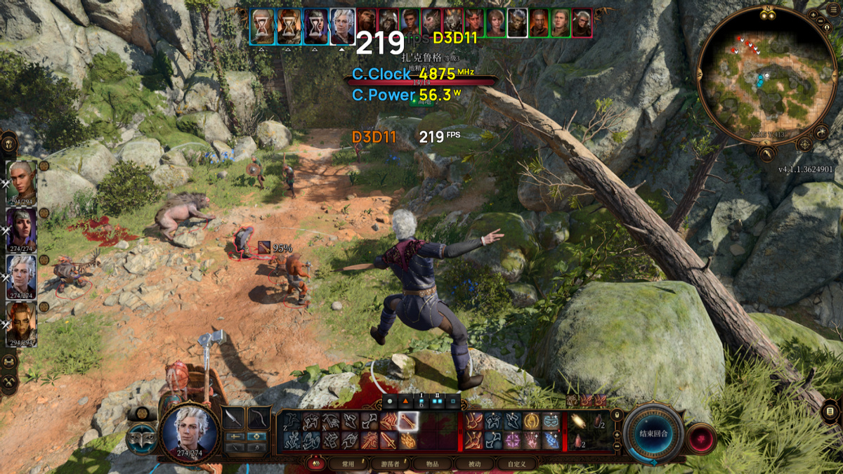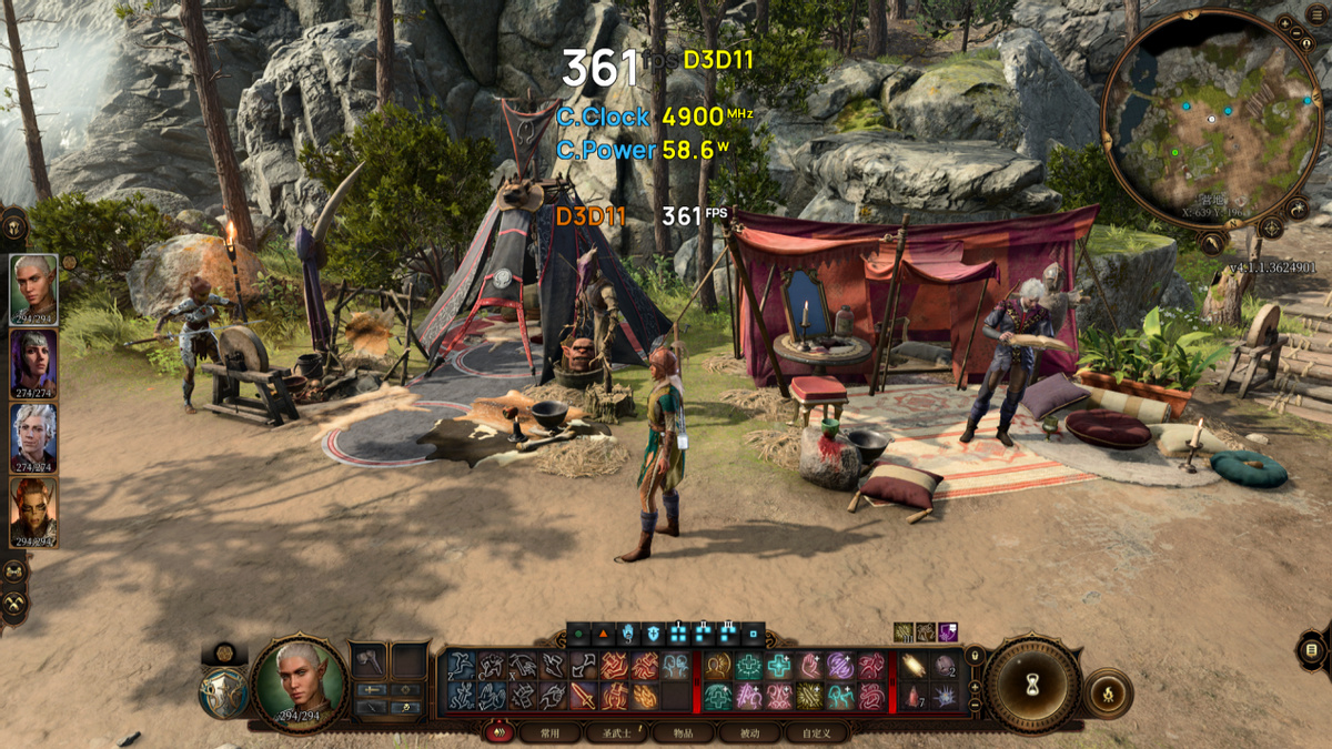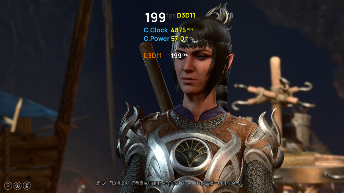 用銳龍7 7800X3D繼續遊玩《博得之門3》,可以看到在營地、戰鬥和對話的場景下,銳龍7 7800X3D的功率始終都沒有達到60W,可以說是非常省電了。同時,遊戲的幀率也非常高,達到了極爲流暢的水平。雖說這是一款回合制的CRPG遊戲,但在平時探索世界的時候還是第三人稱即時遊玩的,所以對操作的流暢度還是有要求的,幀率當然也是越高越好。
