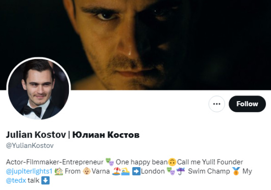 Julian Kostov於1989年出生在保加利亞,年輕時曾是職業游泳運動員,獲得過10次全國冠軍。受到希斯·萊傑在《蝙蝠俠:黑暗騎士》的表演啓發,決定從事演藝事業,後出演過《絆腳石》、《倫敦陷落》、《24小時》等電影和美劇。