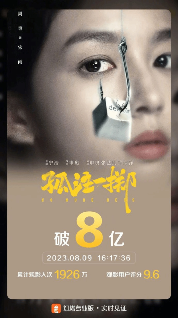 数据显示,影片《孤注一掷》票房突破8亿。