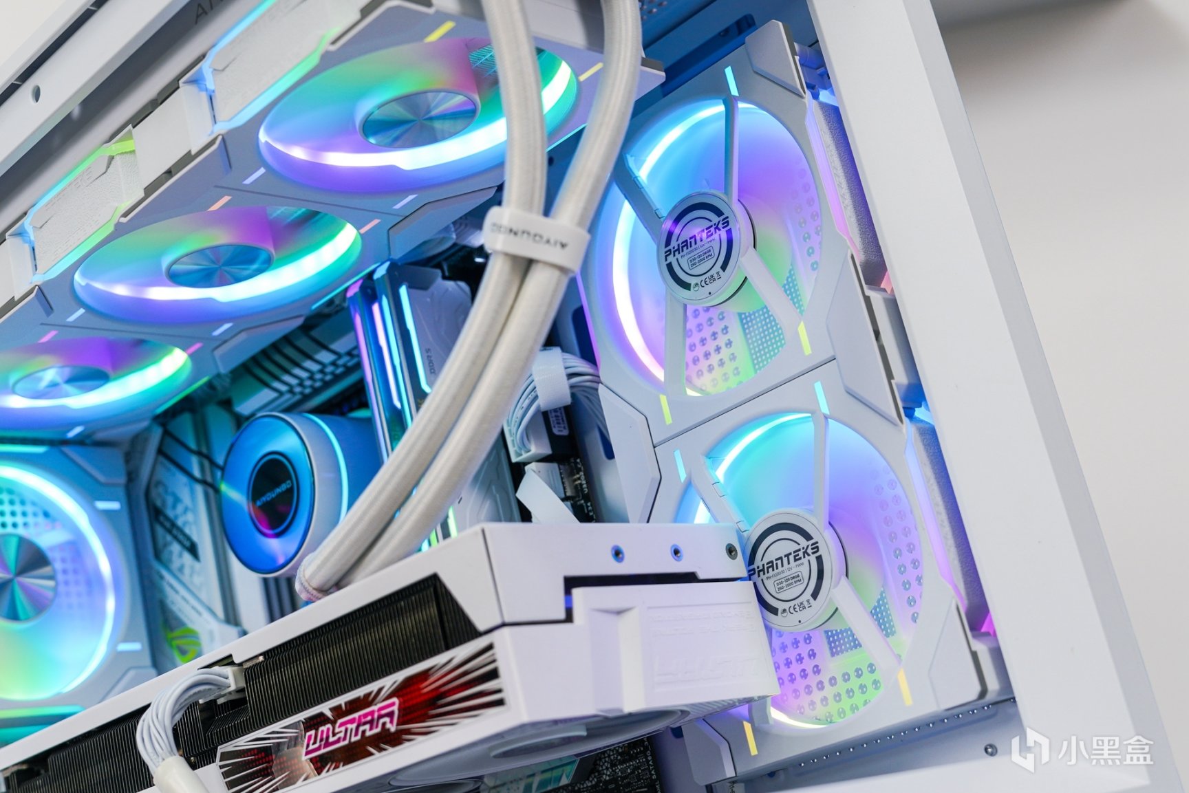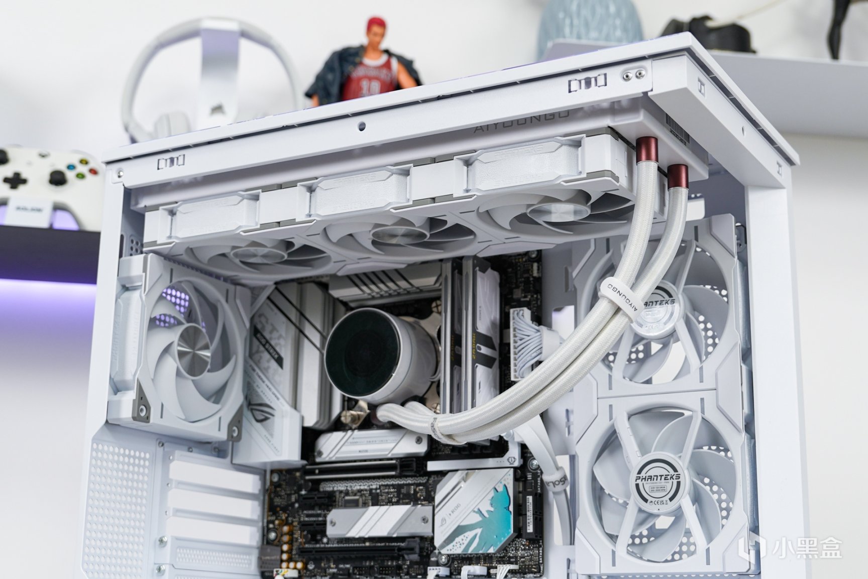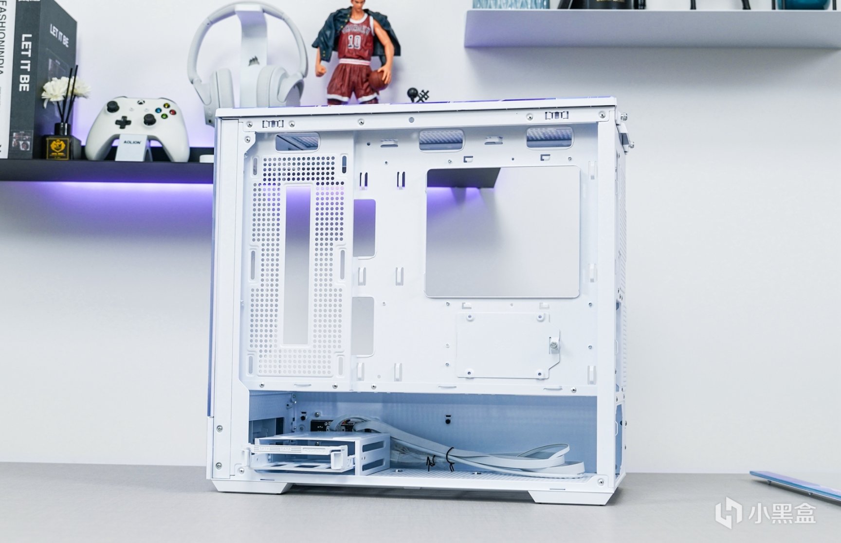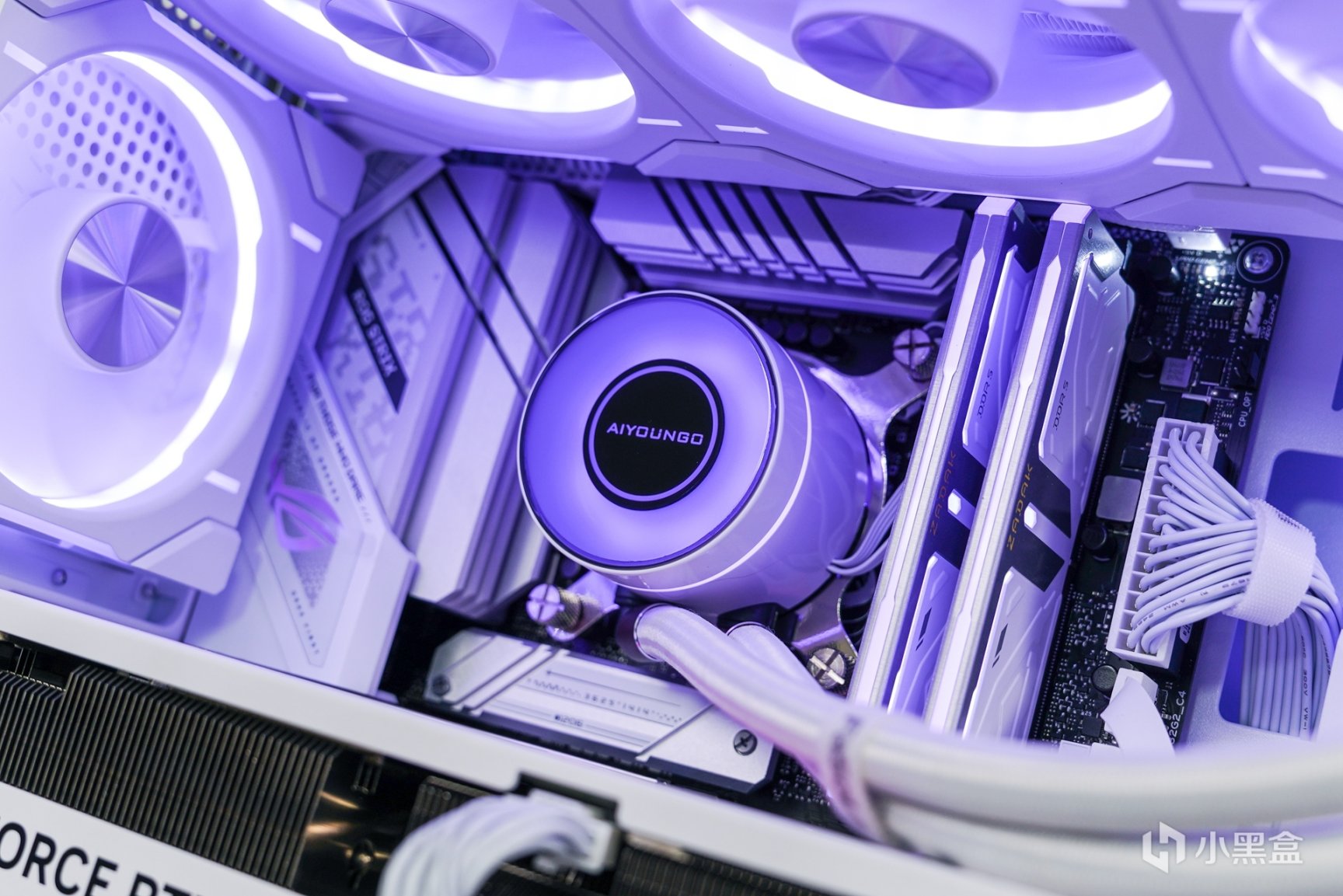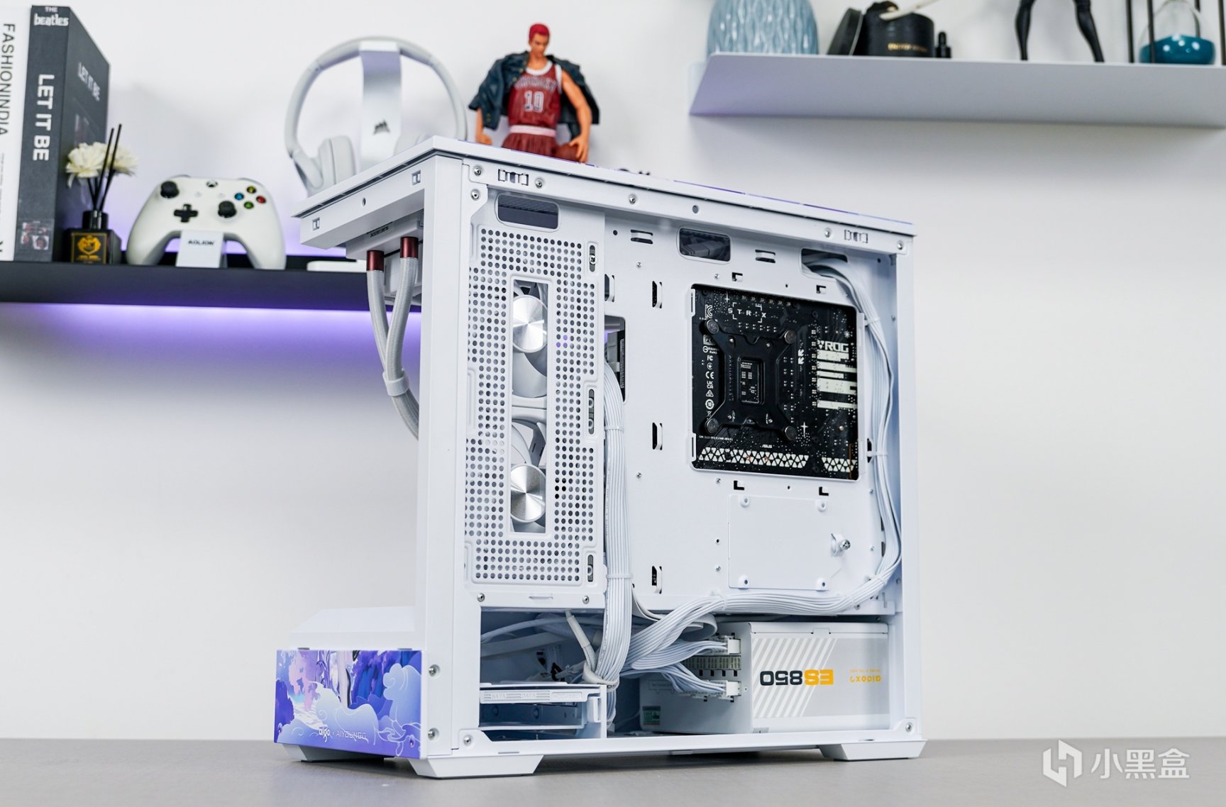 除了主机外观拥有更具个性化的喷涂之外,箱体内部的采用了白色硬件搭配上浅紫色灯效和外观配色相呼应。