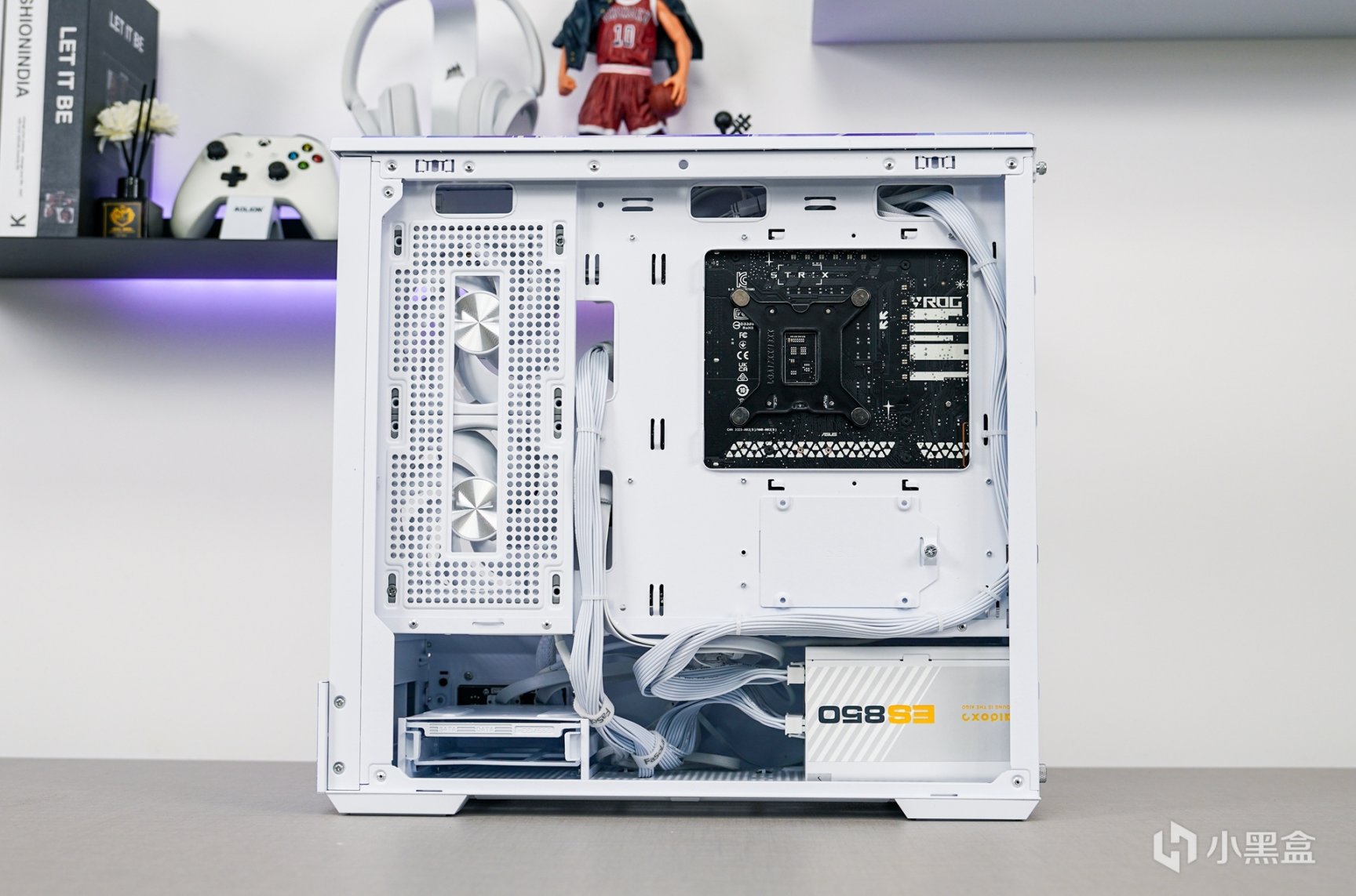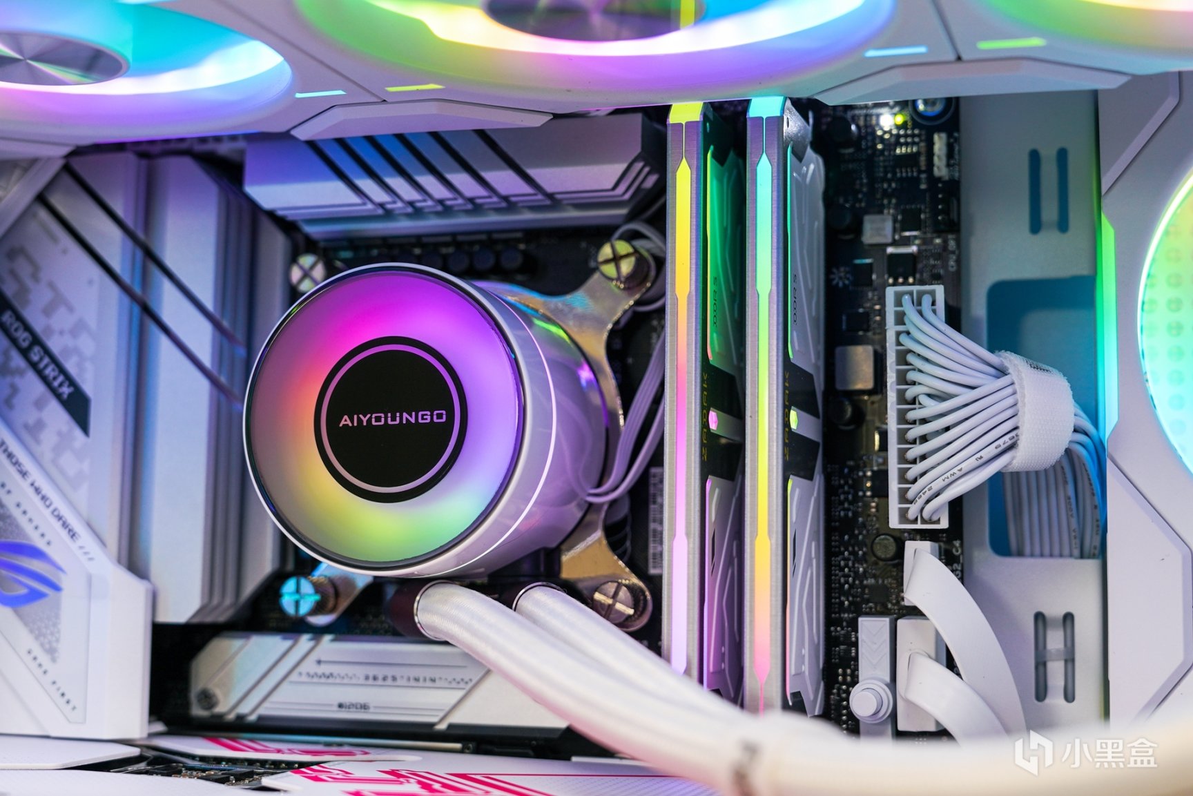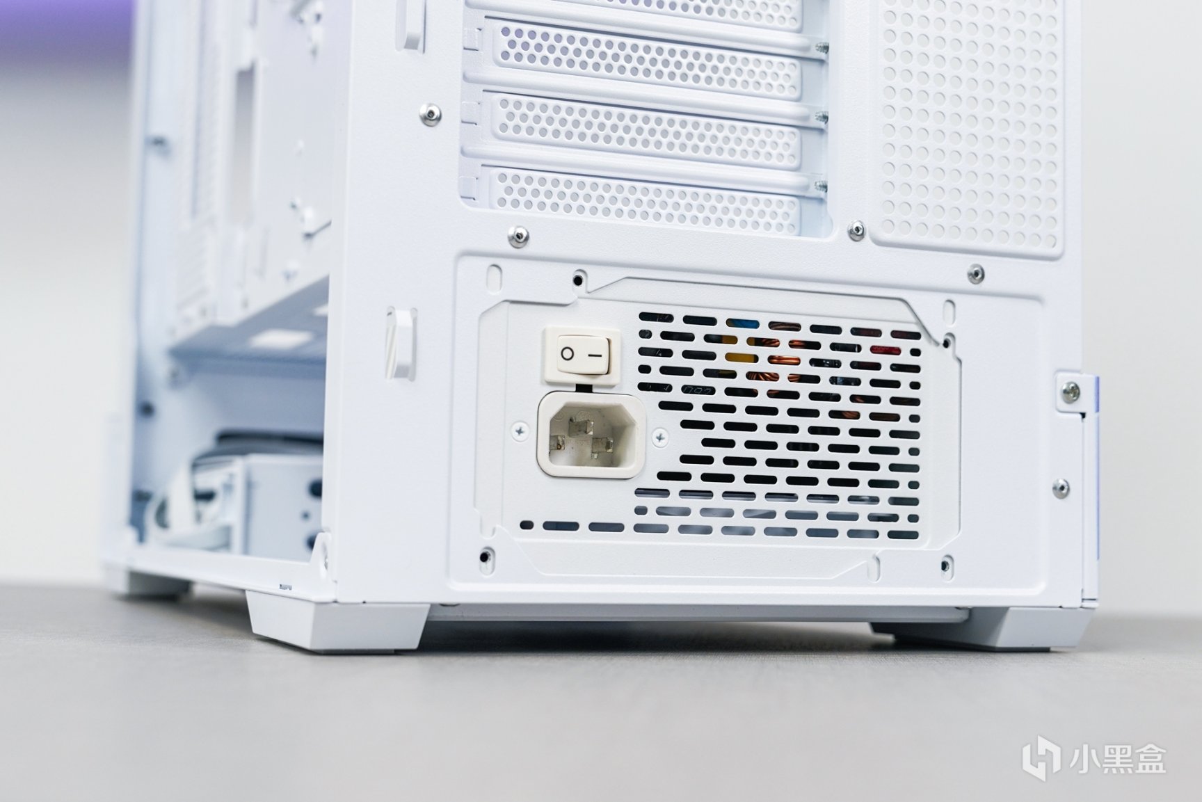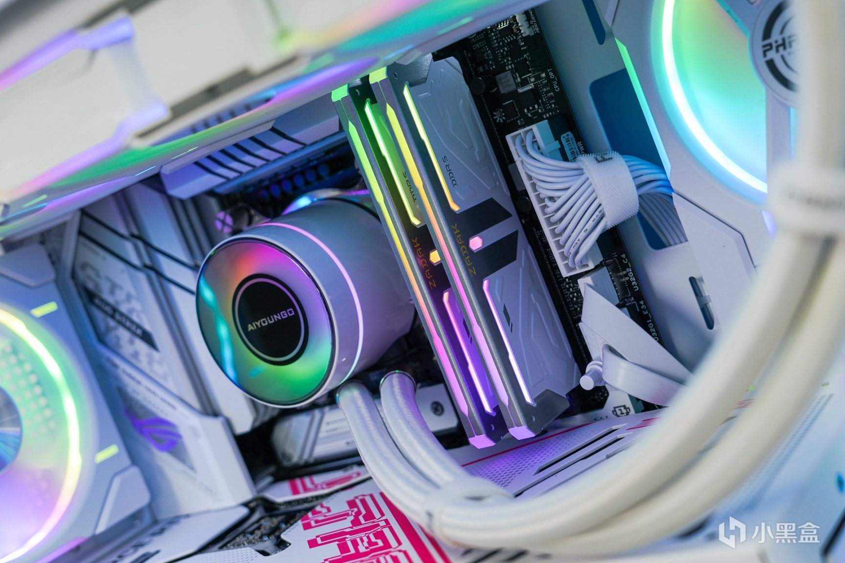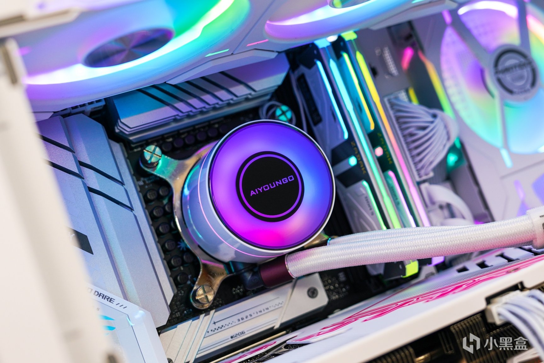 除了主机外观拥有更具个性化的喷涂之外,箱体内部的采用了白色硬件搭配上浅紫色灯效和外观配色相呼应。