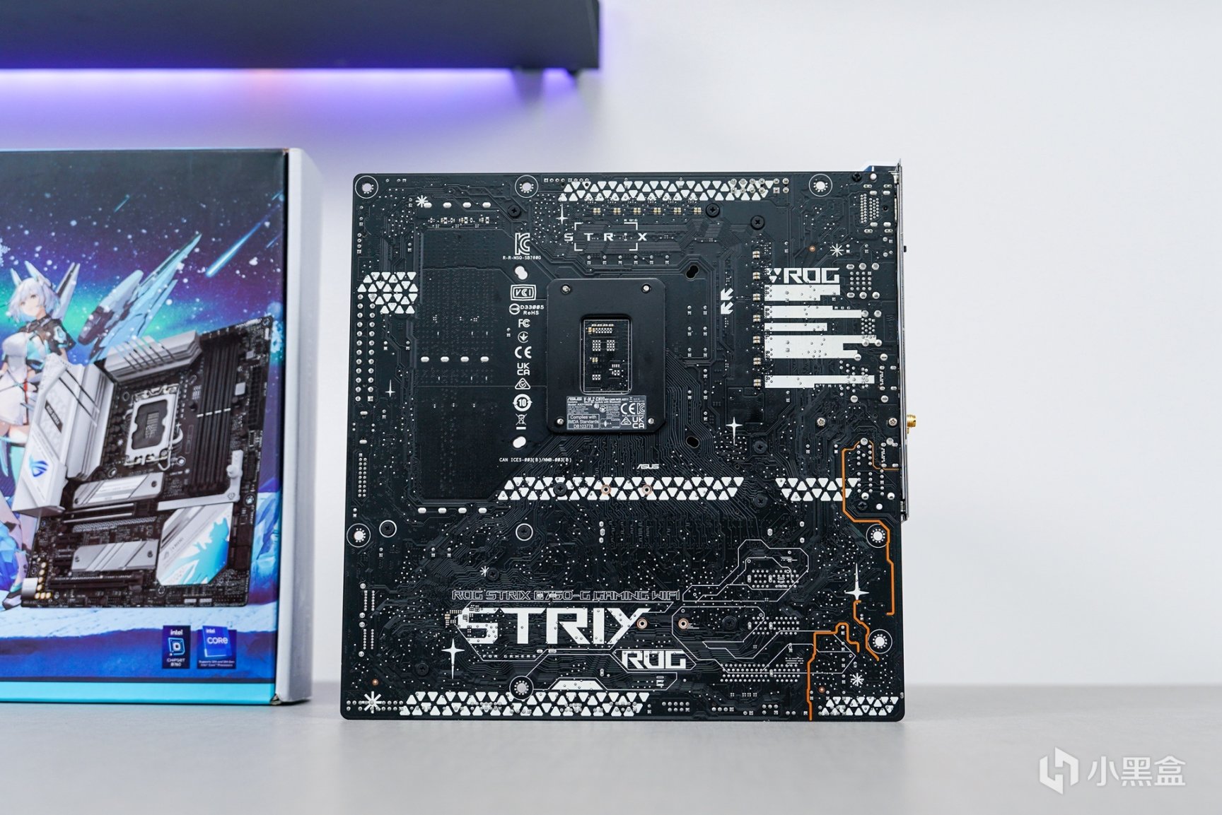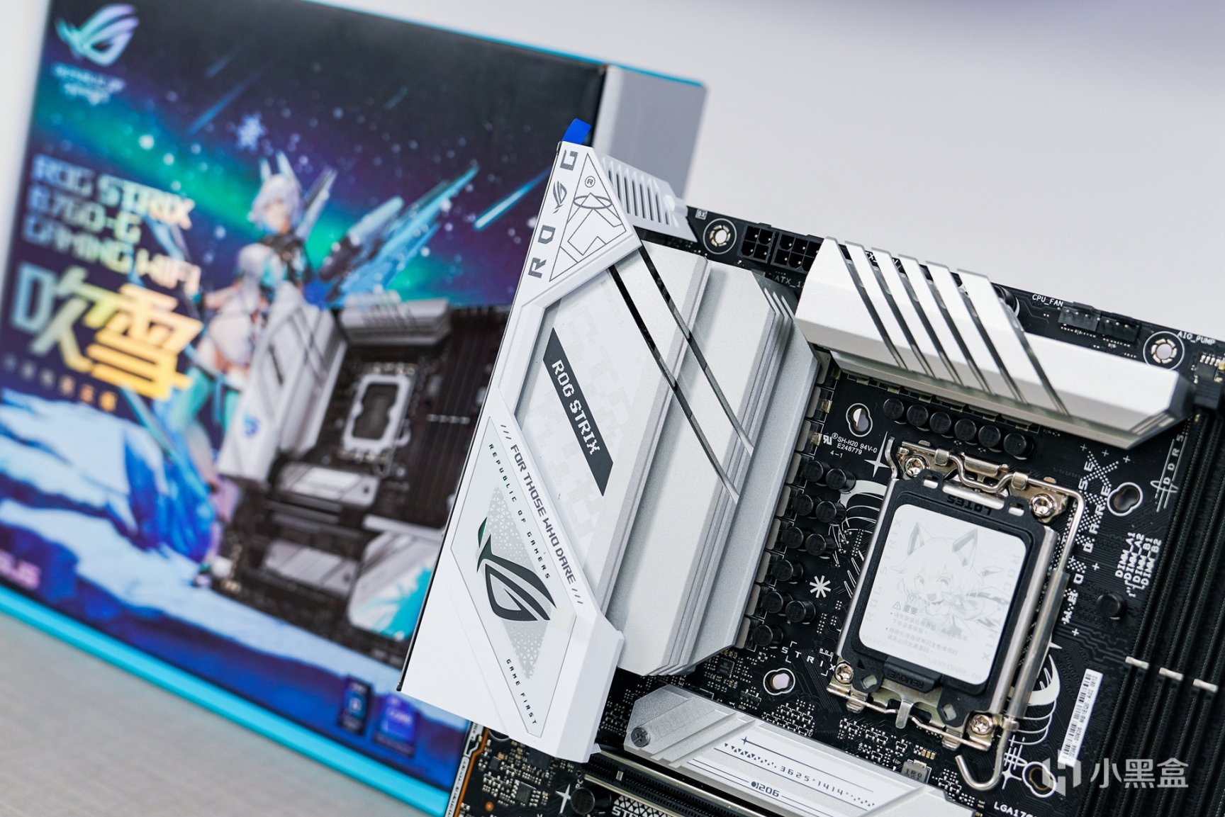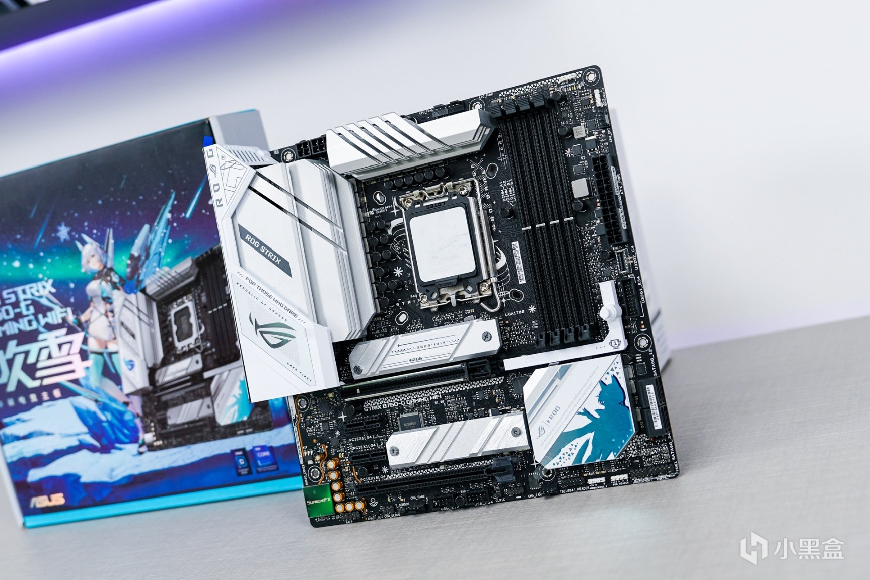 对于这款作为华硕首款下放M-ATX板型的ROG STRIX B760-G D5吹雪,对于这款主板熟悉的玩家来说确实是M-ATX白色主机选用最多的白色主板之一。对于上几代吹雪来说在细节上又做出了不少的变化,采用元素更丰富的黑白灰银三色作为主的拼色搭配,色调分明的科技感+电竞风融合也在主板外观上。