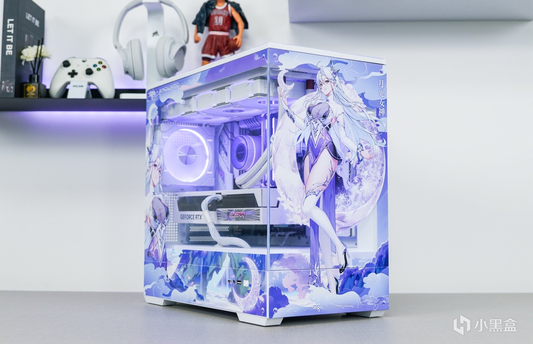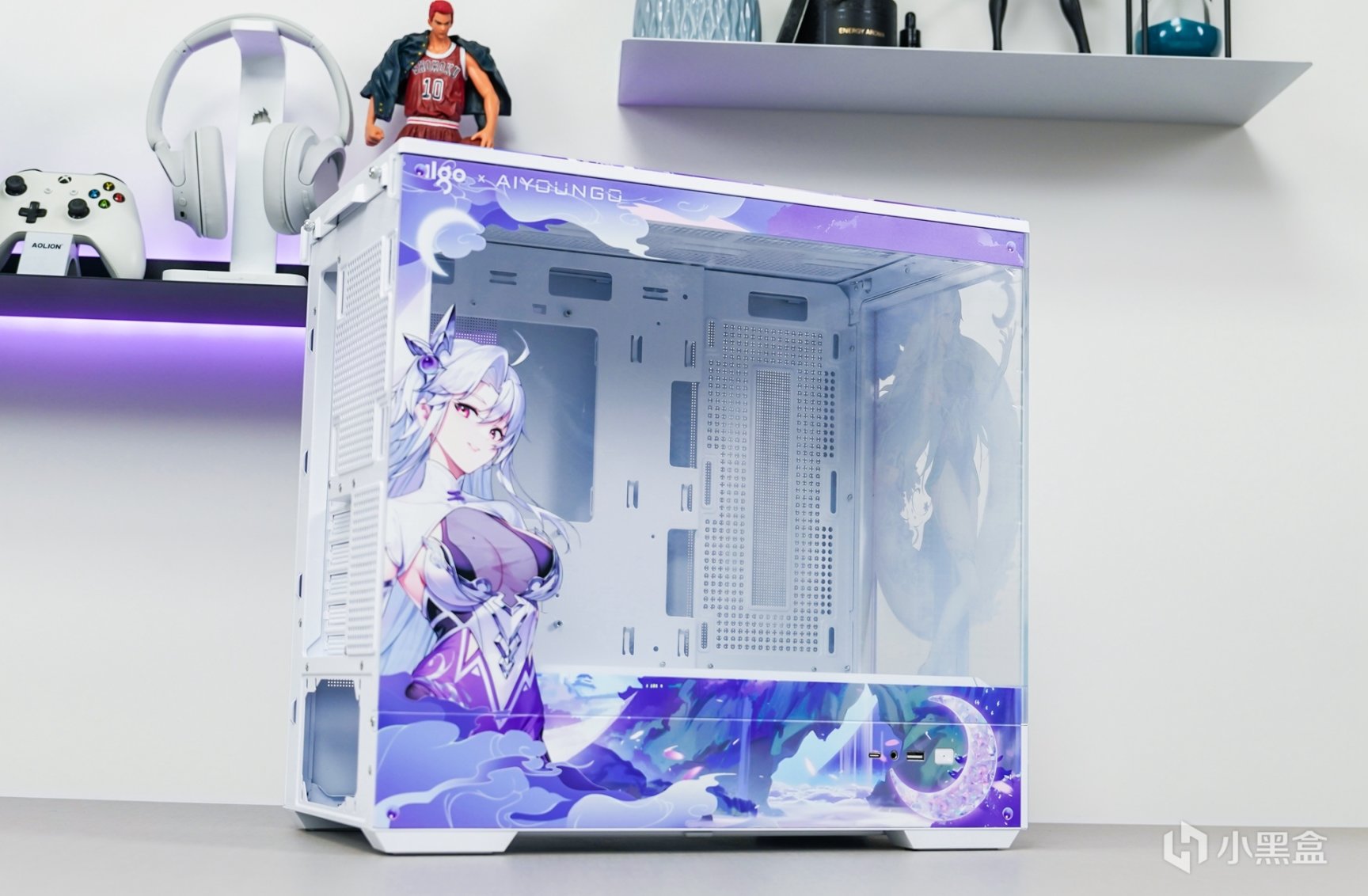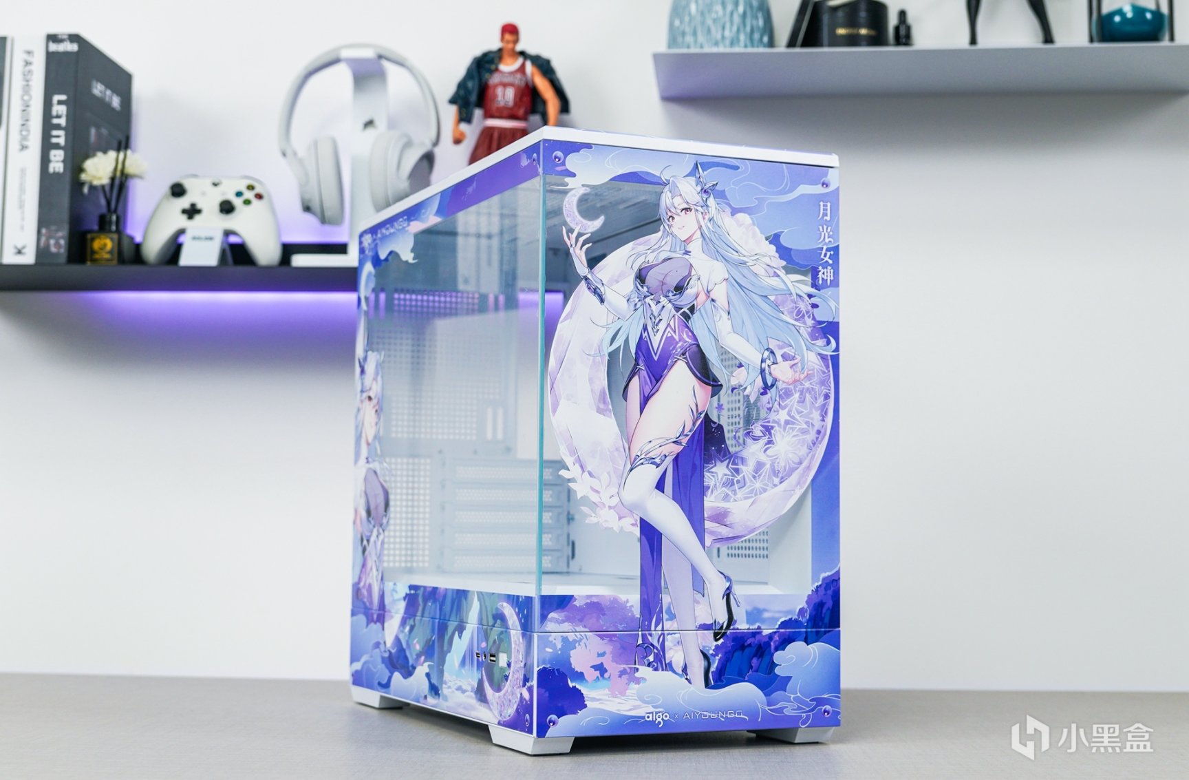 随着次元文化的不断发展与普及,次元文化已经在年轻一代中非常的普及,随着越来越多的本土化次元文化的兴起,原创的国风IP融入主机外观上,不但让主机外观更有辨识度,还可以更好的展现和表达更具个性化的主题。这次以国风IP—月光女神为主题(AIGO为了星璨岚所推出的虚拟次元人物)的主机安装完成后,浅蓝、浅紫和白三组色调的图案主要是为了突显整个主机的主题。
