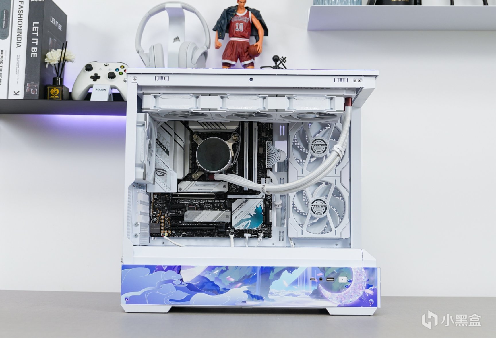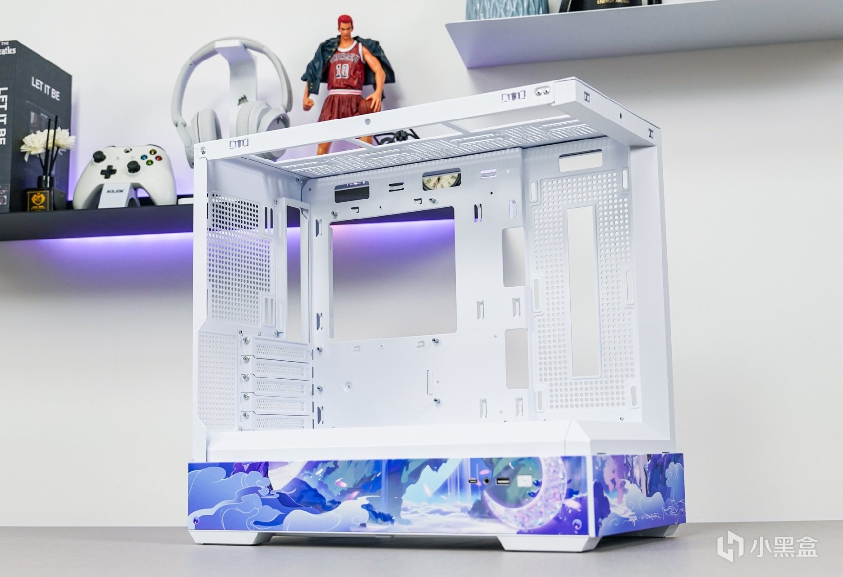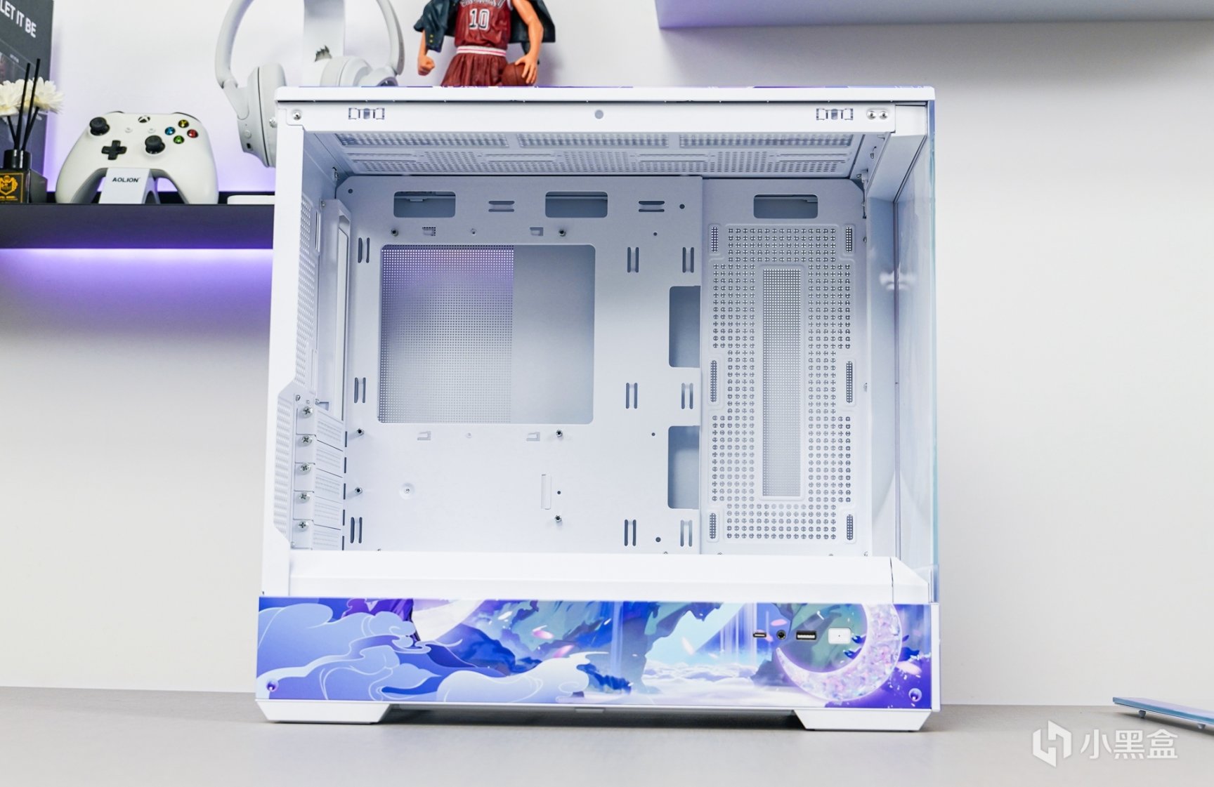 平整的面板设计更适合DIY玩家用以变装外观,估计不少喷图商家也会把这款机箱设计出不少类似这次使用的—月光女神的主题改装方案了。适当的变化也更能迎合时下年轻玩家的审美和需求。这也展现出DIY那更为多变的可玩性。