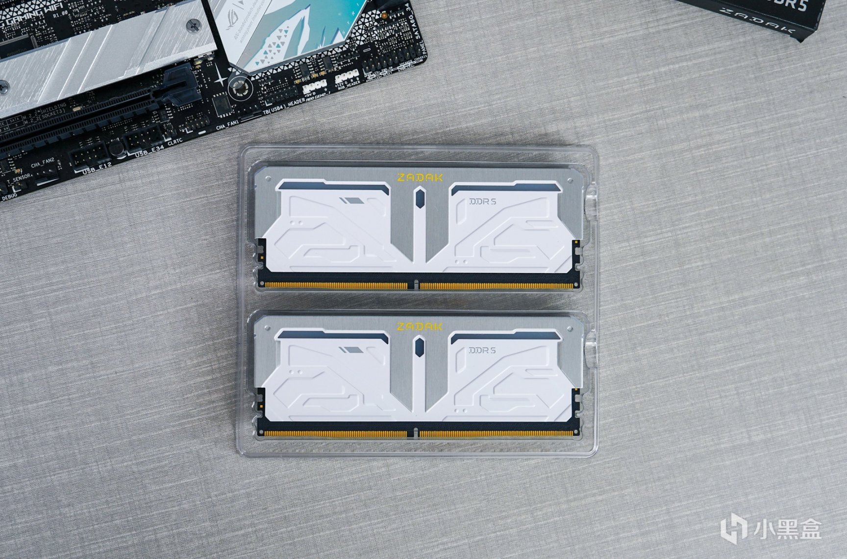 这套内存一共有2种频率可选:5600和6000MHz,时序 C40-40-40-96,电压 1.25v,32GB(16GBx2)。高 5cm、宽 13.6cm、厚 0.97cm,整个内存的体积还是较大的一款。特色:采用电源管理芯片,强化散热设计,支持 ON-DIE ECC 纠错机制,通过了 AMD EXPO / Intel XMP 双平台认证。顶部发丝纹保护罩中央黄色字体的 ZADAK Logo。顶部柔光罩专利五段式超广角灯效,借由材质交错设计,呈现有宝石形状的镂空导光效果,支持各大厂家主板 ARGB 灯光同步。