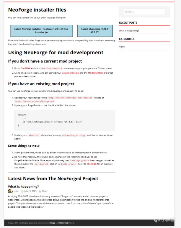 关于原Forge究竟有多少开发者留下来了,根据网上资料似乎只有LexManos一位没有加入,我们进行一个统计。Forge的GitHub组织有95个成员,其中88个加入了NeoForged的组织,也就是说只有7个原Forge开发者没有加入NeoForge。我们可以大概推断,原Forge留下了不到10%的开发者。当然,这只是一个粗略的估计,实际情况可能有所不同。但是原来的Forge官网自7月24日之后再也没有更新,GitHub的最新更新记录也在两周前。