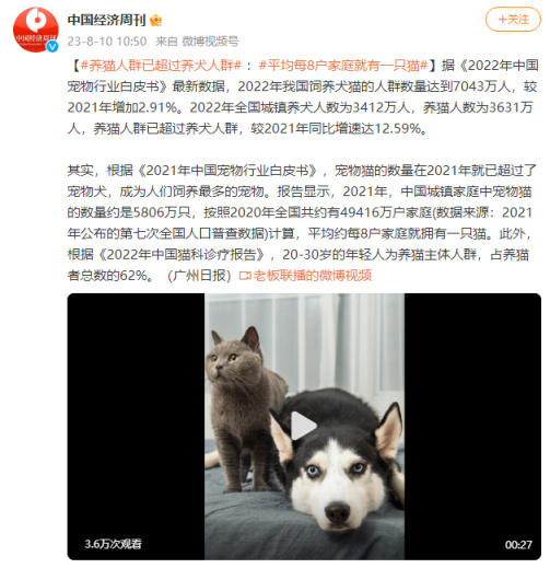 只是在这天里各家媒体会集中报道一些跟猫咪有关的资讯,比如根据《2022年中国宠物行业白皮书》最新数据显示,2022年我国饲养犬猫的人群数量达到7043万人,较2021年增加2.91%。