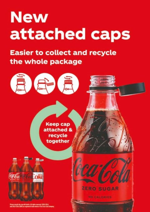 2022年可口可乐表示,到2024年初,旗下的可口可乐 (Coke) 、零糖可乐 (Coke Zero Sugar) 、健怡可乐 (Diet Coke) 、芬达 (Fanta) 、雪碧 (Sprite) 和胡椒博士 (Dr Pepper) 等产品的塑料瓶都将采用该设计。