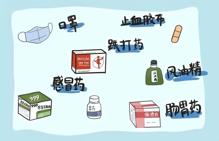 可选:止痛药(女生常备)、鼻炎用药、抗过敏药、复合维生素片、其他保健品