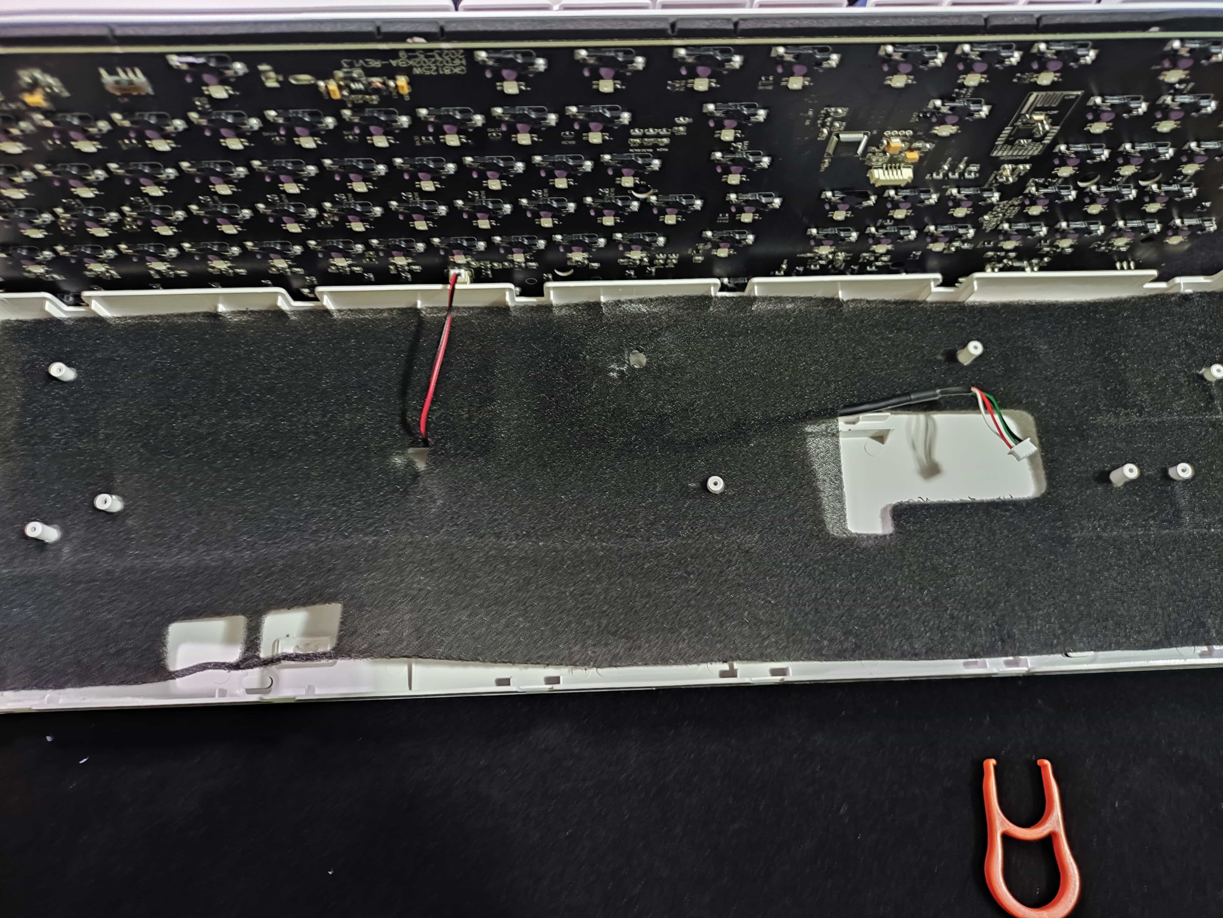 在PCB定位板下面可以看到有一個消音底棉,該有的基本上都有了。