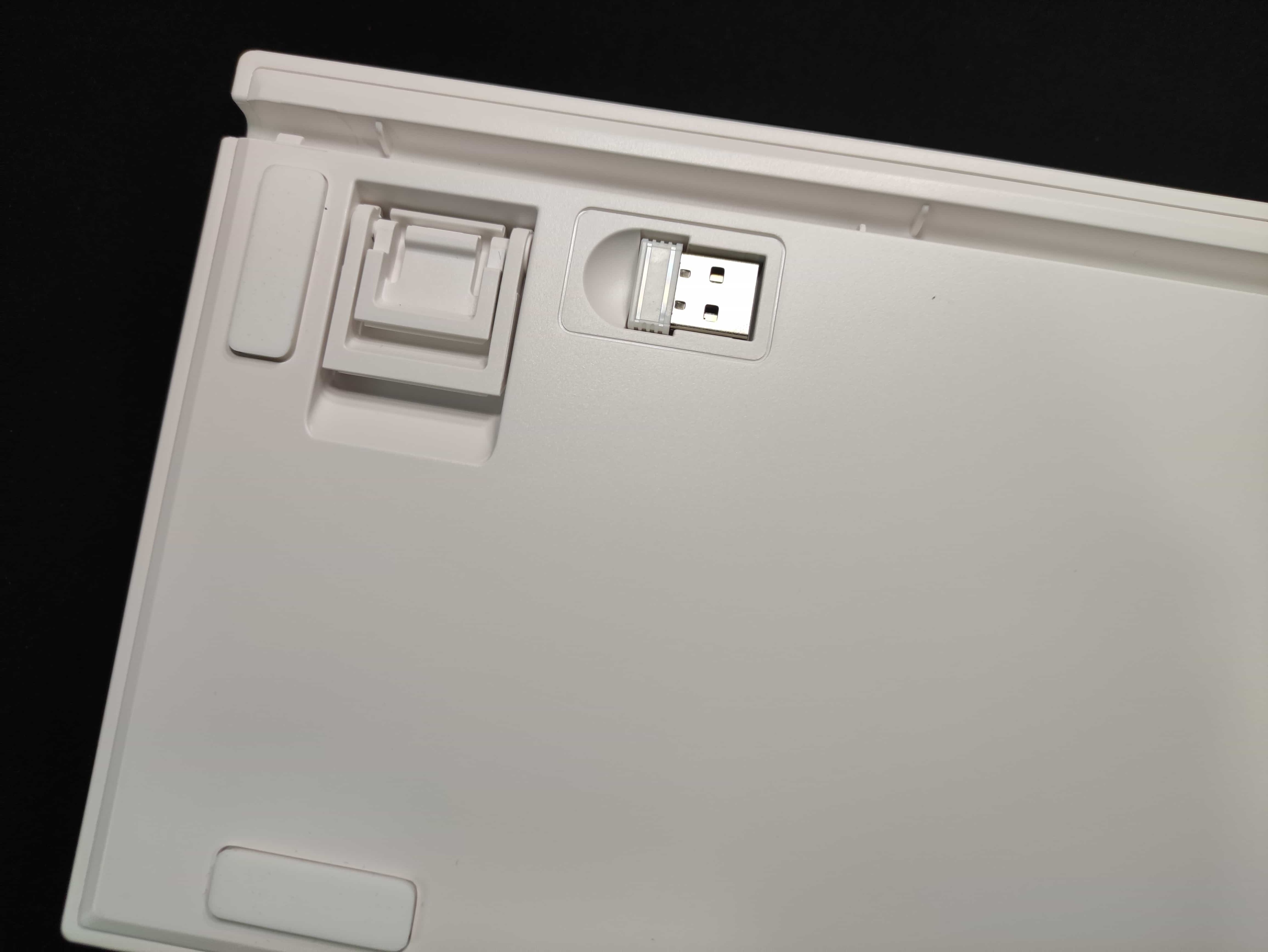 教程部分則是一個兩段式腳撐,2.4g接收器收納倉在左上角,磁吸結構,吸力蠻大的,基本上不會掉出來。