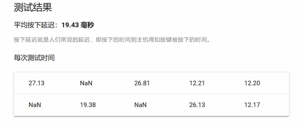 2.4g延遲測試了一下還不錯,按下20ms左右,抬起30ms左右。
