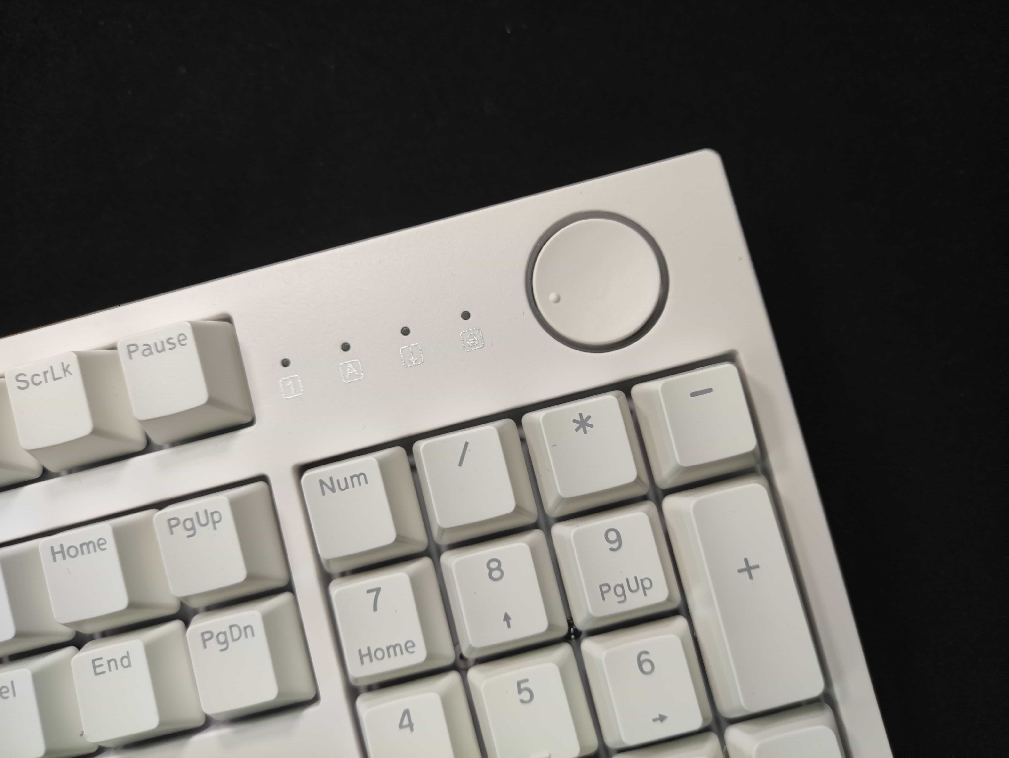 右上角是一個旋鈕,旋鈕和其他鍵盤的突出式設計不大相同,是一個嵌入式的,降低了視覺上的突兀性。