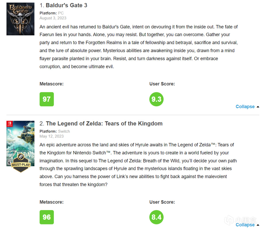 經過了2022年衆多遊戲跳票延期後,23年迎來許多大作的發售,上半年,任天堂發佈了《塞爾達傳說:王國之淚》,獲得IGN、GS雙滿分,在145家遊戲媒體中,平均分來到了96分!