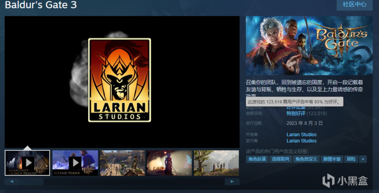 博德之門在玩家羣體中口碑同樣超高,M站用戶評分均分9.3,在12萬條用戶評測中,獲得特別好評(93%),在近期6萬6千條用戶評測中,獲得好評如潮(95%)!