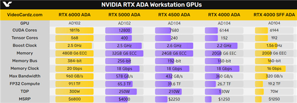 NVIDIA Ada Lovelace架构在桌面、笔记本游戏卡上已经布局完毕,如今在工作站上也圆满了。
