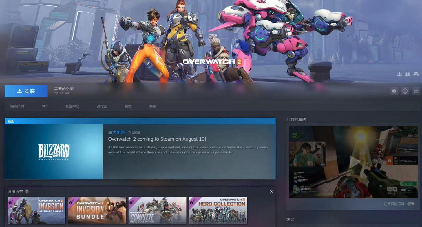今日,Steam平台上备受期待的《守望先锋2》正式免费解锁,同时推出了第六赛季和名为“入侵”的大型更新。这个版本的整体大小为34.21GB,玩家可以直接下载并开始游戏。