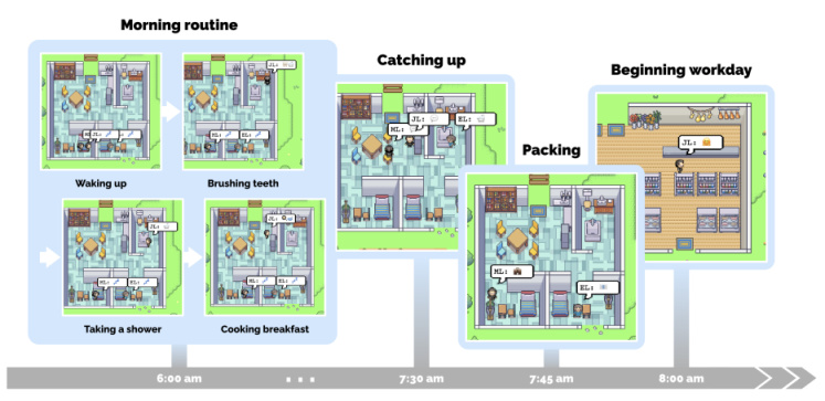 25個AI智能體居住在數字西部世界中,每個人都有獨特的個性和背景故事,卻沒有意識到自己生活在模擬世界中,這些智能體會去工作、閒聊、組織社交活動、結交新朋友。