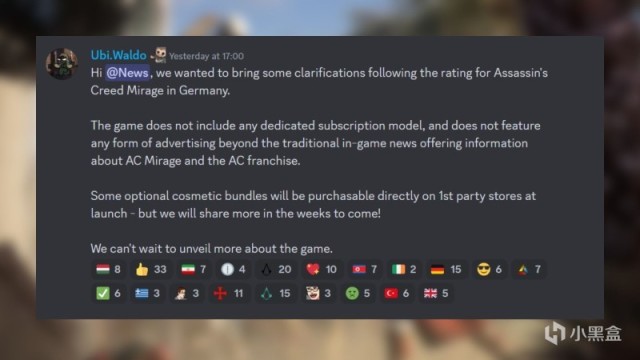 针对这则网上爆料的信息,近日育碧官方在Discord频道正式官宣,确认《刺客信条:幻景》游戏内不会有任何订阅服务或升级禁广告功能,但会有可供购买的皮肤。考虑到玩家的担忧,官方此次官宣还特地强调说明,游戏内皮肤将为可选内容,不会影响玩家游戏进度,另外目前官方表示,并未有《刺客信条:幻景》相关付费剧情DLC的计划。游戏将于10月12日上线,登陆PS4、PS5、Xbox One、XSX|S和PC平台