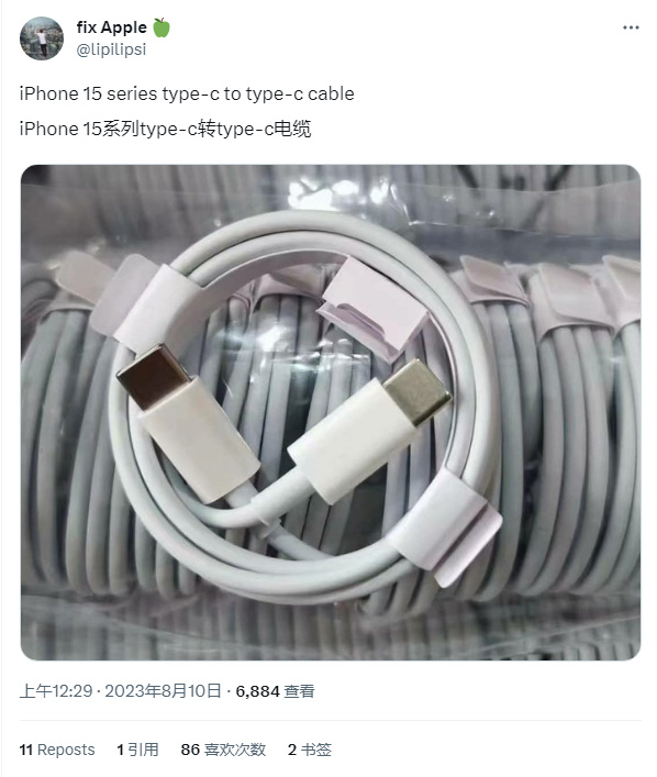 @John011235 分享了多张iPhone15 系列内部组件的照片,他在推文中暗示苹果 iPhone 15 系列包装中将会提供双头 USB-C 充电线,其中图片来自 @搞机兔,目前在苹果中国官网上的售价为 145 元。