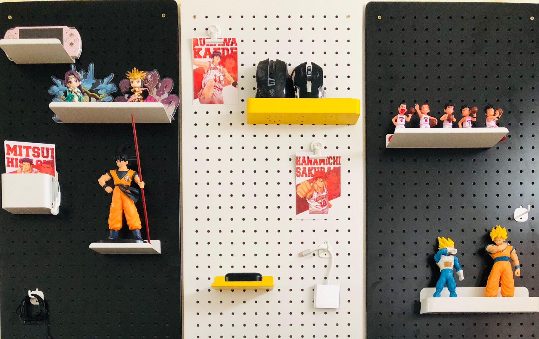 将手办和一些杂物都挂到墙上,既美观又不占用空间。