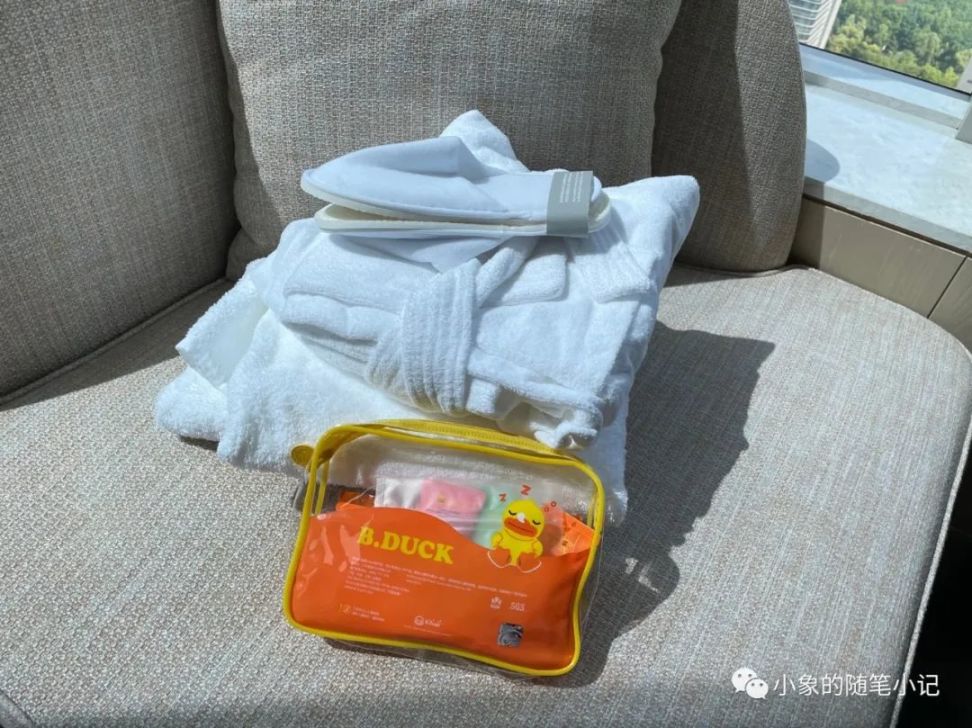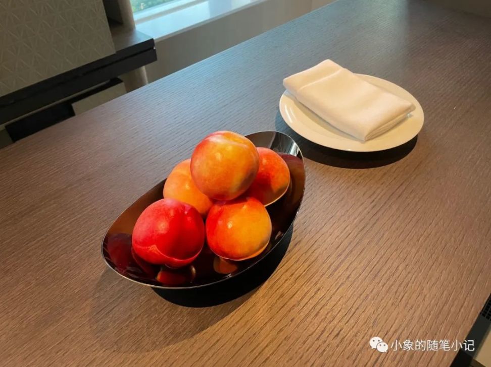 另外我感覺與其他旅客反饋所不同的是,工作人員的態度真的蠻不錯的,從一開始時表示不滿意房型隨便換,房間裏早已準備好的空氣淨化器(畢竟剛開業不到半年房間裏還有味道),到後面馬上主動送來小孩子的浴衣和小黃鴨聯名的旅行裝兒童備品這類,以及下午出門晚上回來看到的歡迎水果(是油桃!還挺甜的),都有考慮到入住賓客的細節所在。
