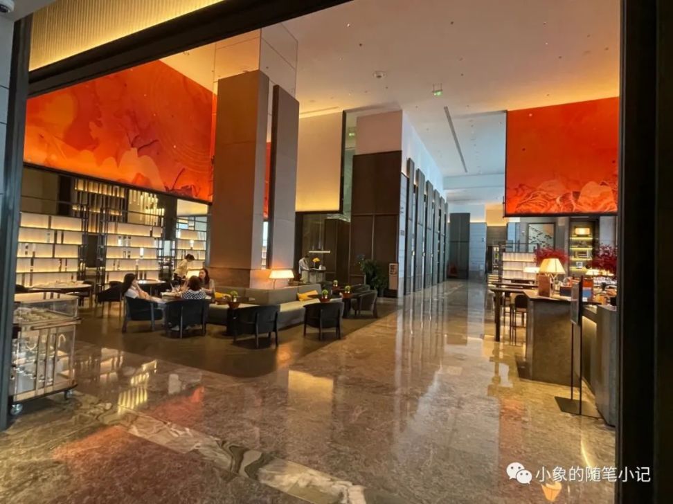 從B2層地下車庫與G層迎賓處均可以通過電梯來到6層,這裏的公區既有酒店大堂,也有酒廊和早餐餐廳的融合,還有一個戶外露臺(每週六晚上還有露天電影看,不過我是無福享受了)。對於酒店6層公區的佈置與設計,高情商來說,公區空間複用程度高,處處體現設計師的靈巧設計與構思。低情商的說法——我不想做低情商的人,就算了吧。
