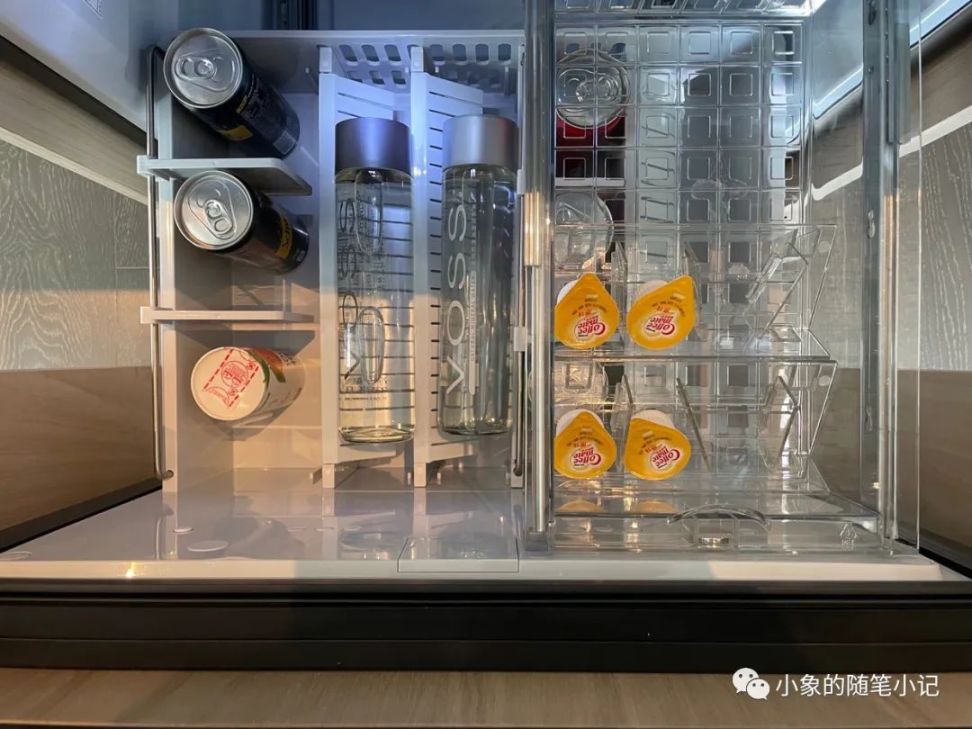 說到minibar,酒店給的配置也屬實不錯,每天給6個Nespresso膠囊、6包TWG茶包、1瓶Voss Still、1瓶Voss Sparkling、2瓶怡泉蘇打水、1瓶雪碧、有糖無糖可口可樂各一瓶、1瓶橙汁、2個瀘溪河桃酥、1罐黑豆豆。