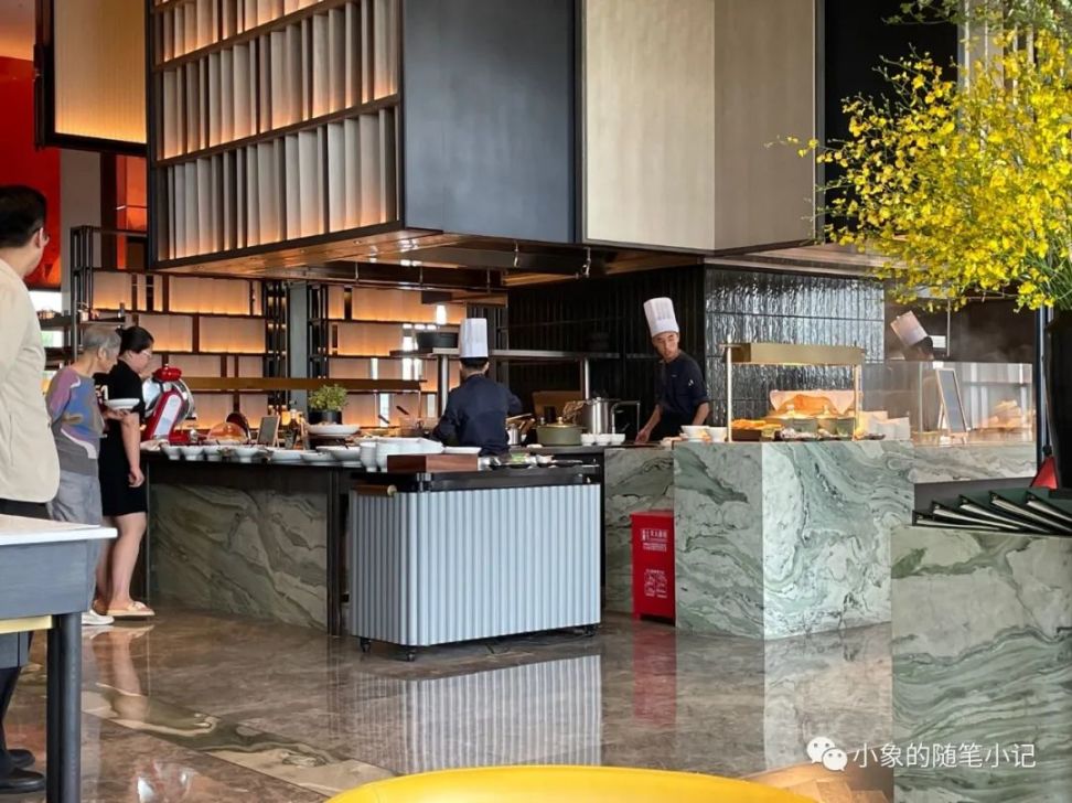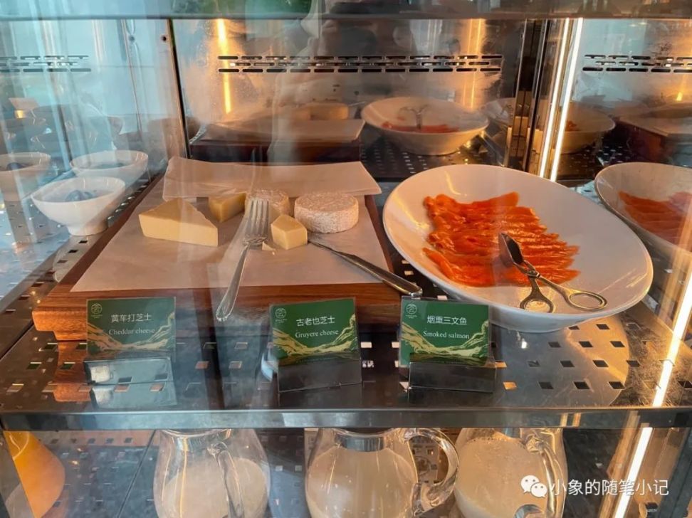第二天醒來,喫早飯!早餐暑期正在搞活動,66元一位(原價218),在凱悅微信小程序上預訂無早房型時額外加購即可。總體而言,早餐出品蠻好,正好喫,但總感覺豐富度上不怎麼樣(也有可能去的晚了,但再晚菜品也應該是齊的,應當準備充足的)。