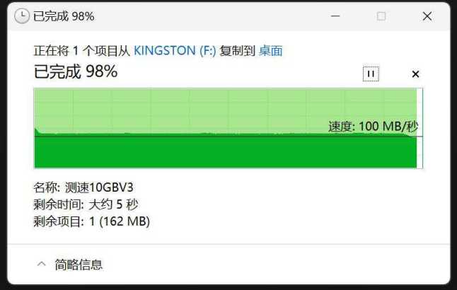 实际拷贝中,10G大文件基本在100MB/s的速度,相当稳定。