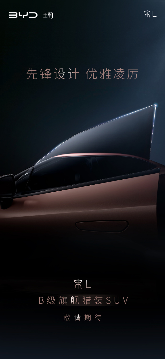 据官方介绍,宋 L 是一款集运动、力量于一身的猎跑型先锋 SUV,造型风格突破传统,以“光”为灵感,打造王朝新一代“先锋龙颜美学”。