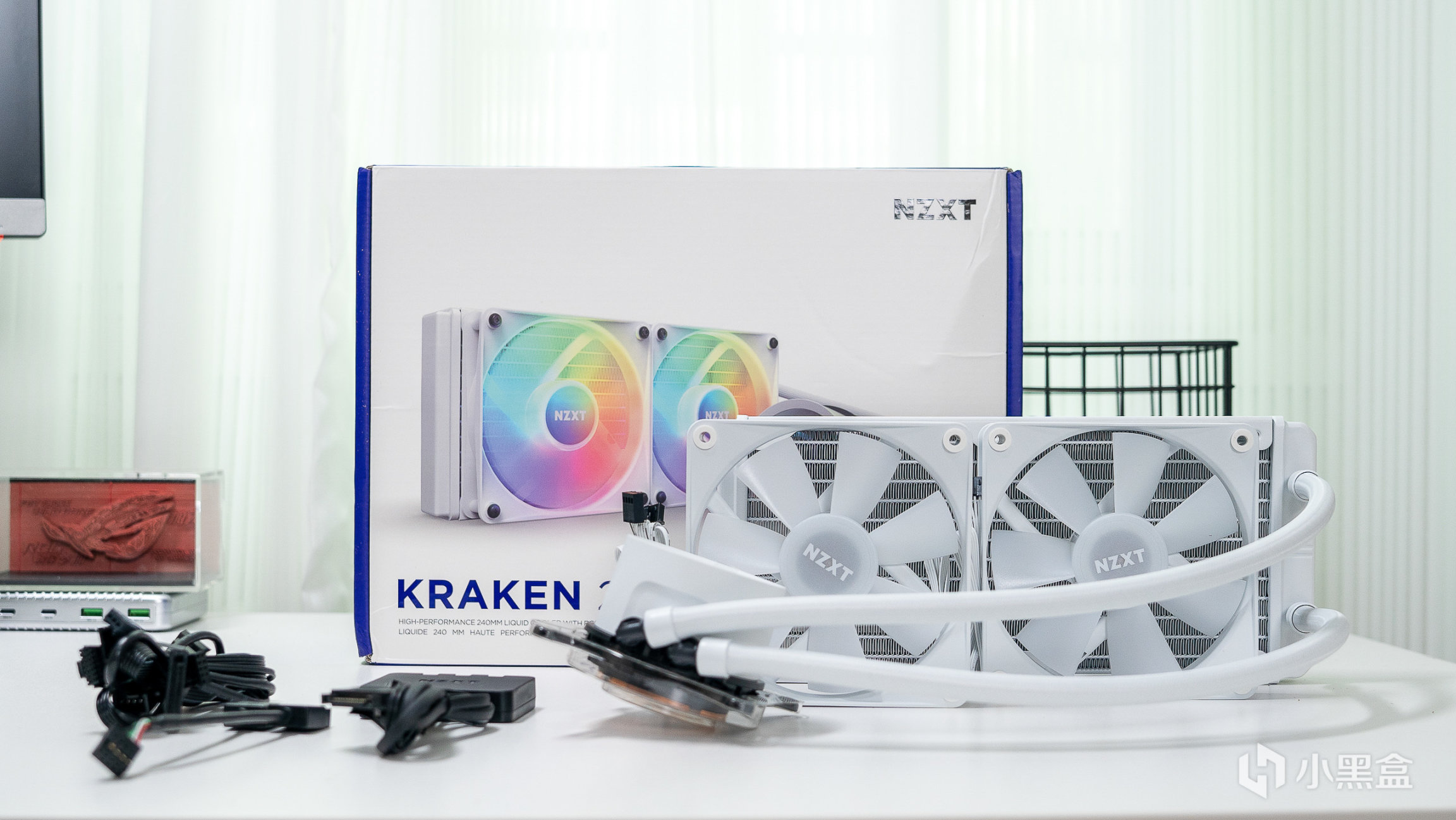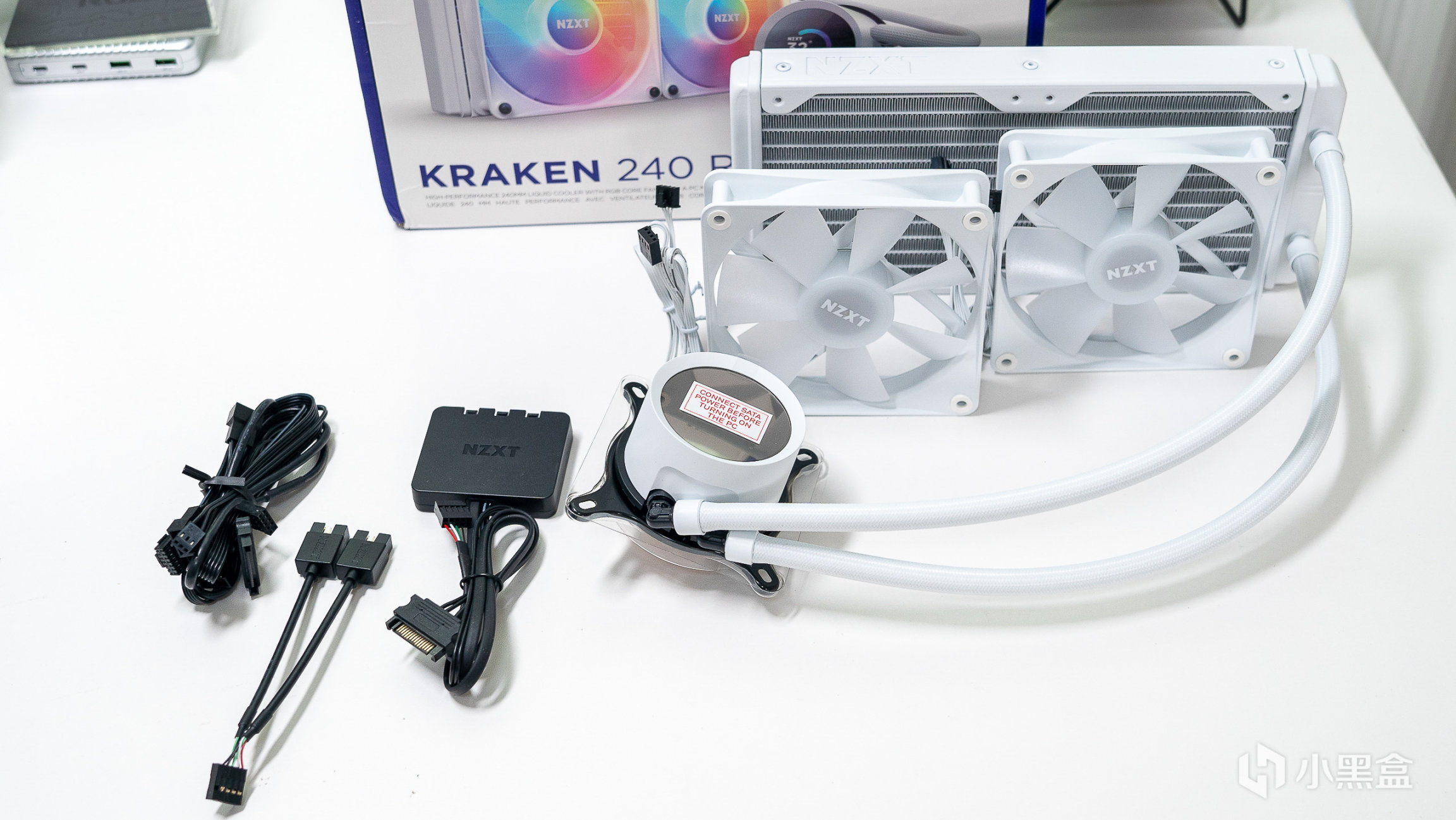 散热根据颜值选择了NZXT 恩杰Kraken 海妖 240RGB 白色一体式水冷,之前就是NZXT X系列用户,这次看到NZXT 这款海妖有了更新,而且颜值升级像Elite 看齐,从原先的LED 冷头升级到LCD 冷头,风扇更是升级到F RGB CORE 风扇。海妖RGB 依旧提供了240/280/360 三个冷排版本可选。