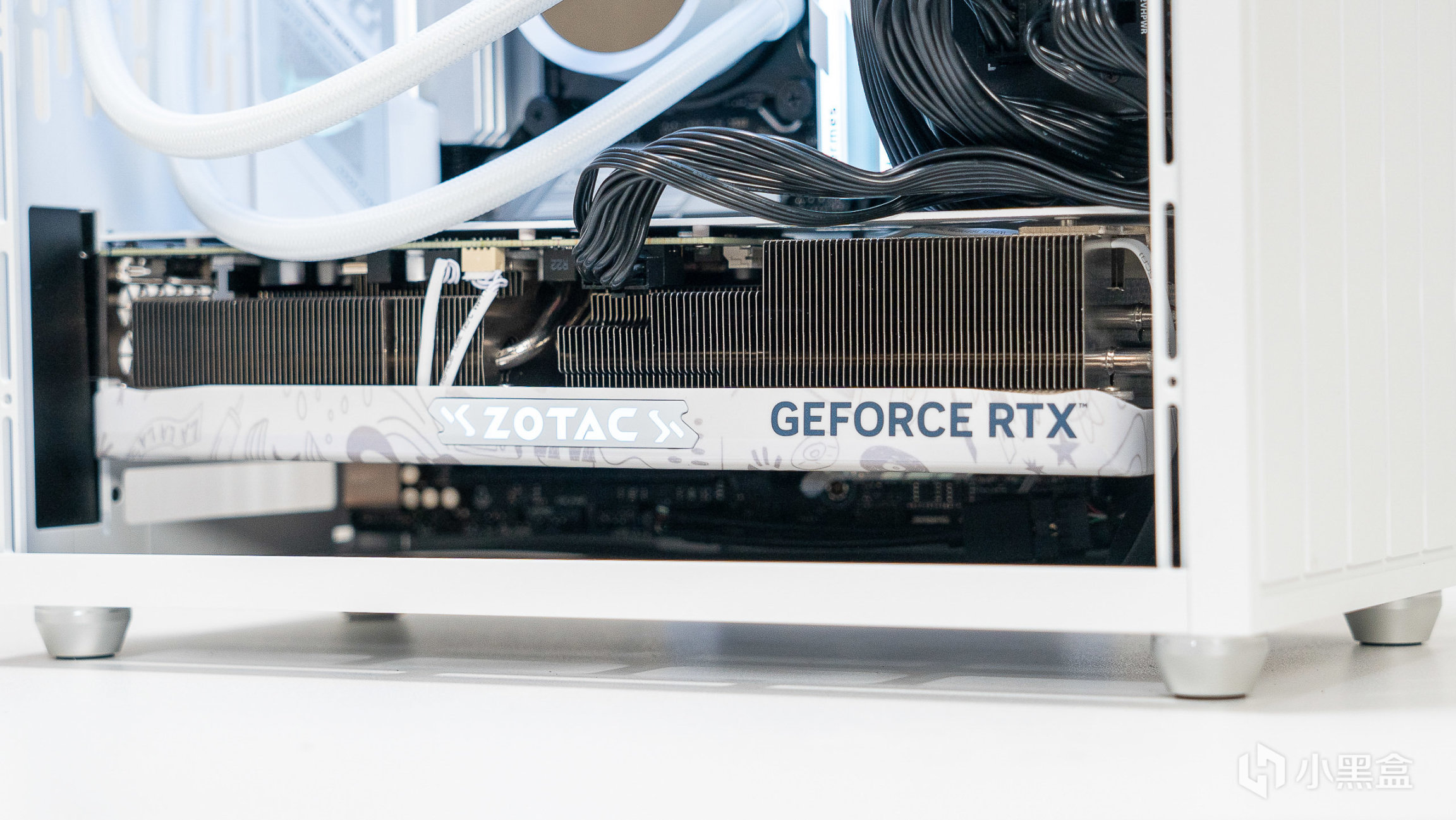 显卡方面,选择了白色的索泰RTX 4070Ti 12G X-GAMING 欧泊白,在一众白色显卡中索泰 4070Ti 欧泊白采用了极具辨识度的涂鸦设计。而且就配置来讲,对于目前更新NV 40 系显卡我还是觉得4070TI 是目前40 系最值得推荐的一个选择。7680 个CUDA 流处理器、192bit 显存位宽搭配 12GB GDDR6X 规格显存,在DLSS 3 加持下除了可以满足玩家2K 分辨率下高刷的游戏体验,而且也是一张可以在4K 分辨率下也可以流畅的显卡。